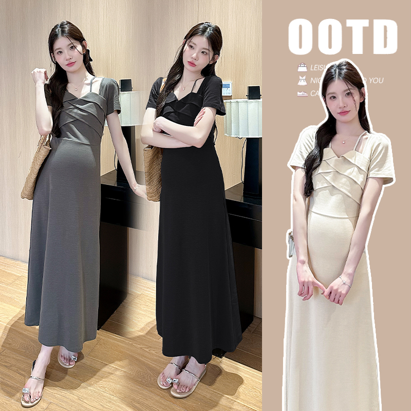 Maternity summer dress 2025 new fashion mothers wear pure cotton high-quality slim French summer skirt during pregnancy