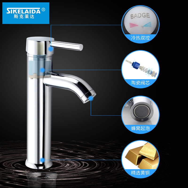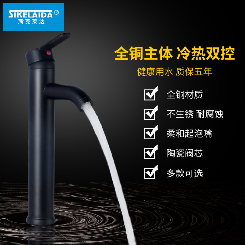 Basin cold and hot water faucet copper bathroom cabinet single handle single hole washbasin washbasin under the table and the upper plate heightened black