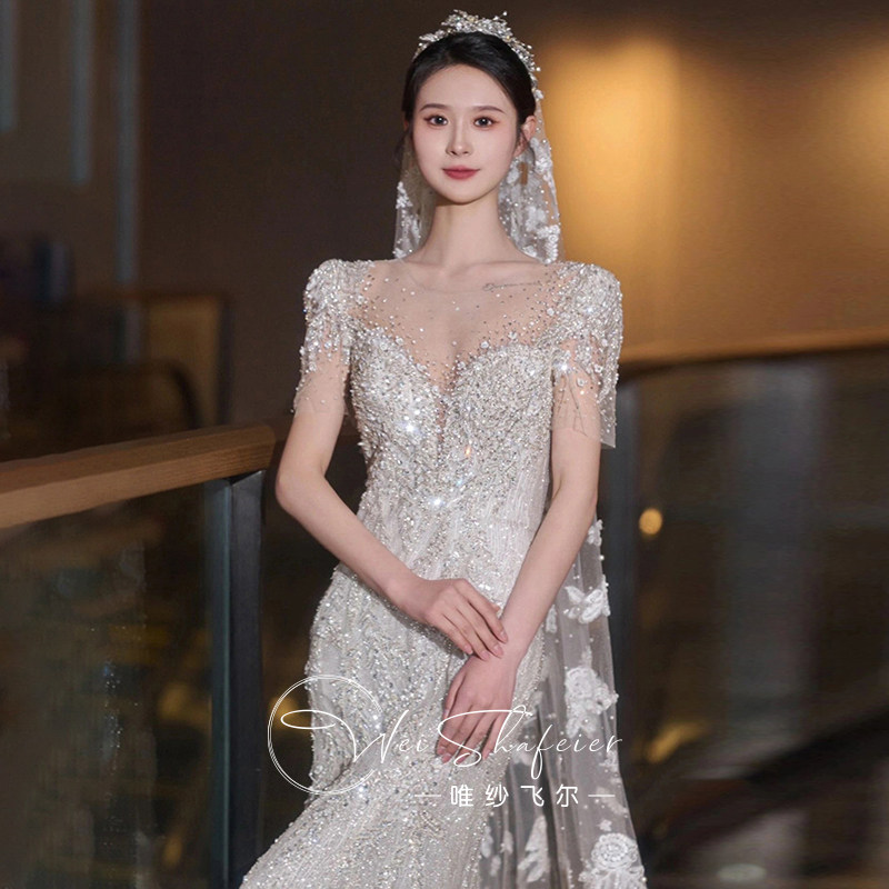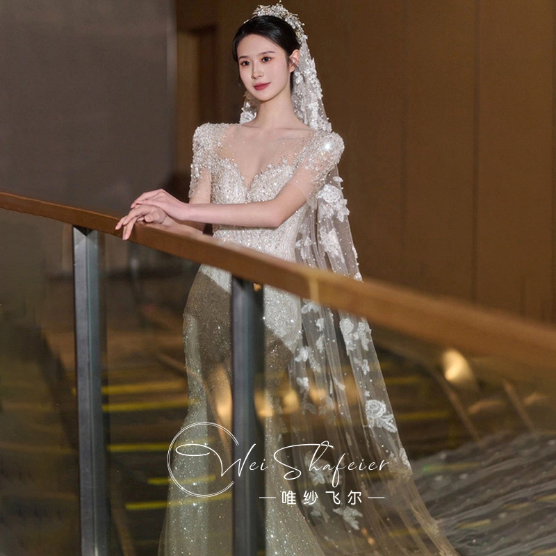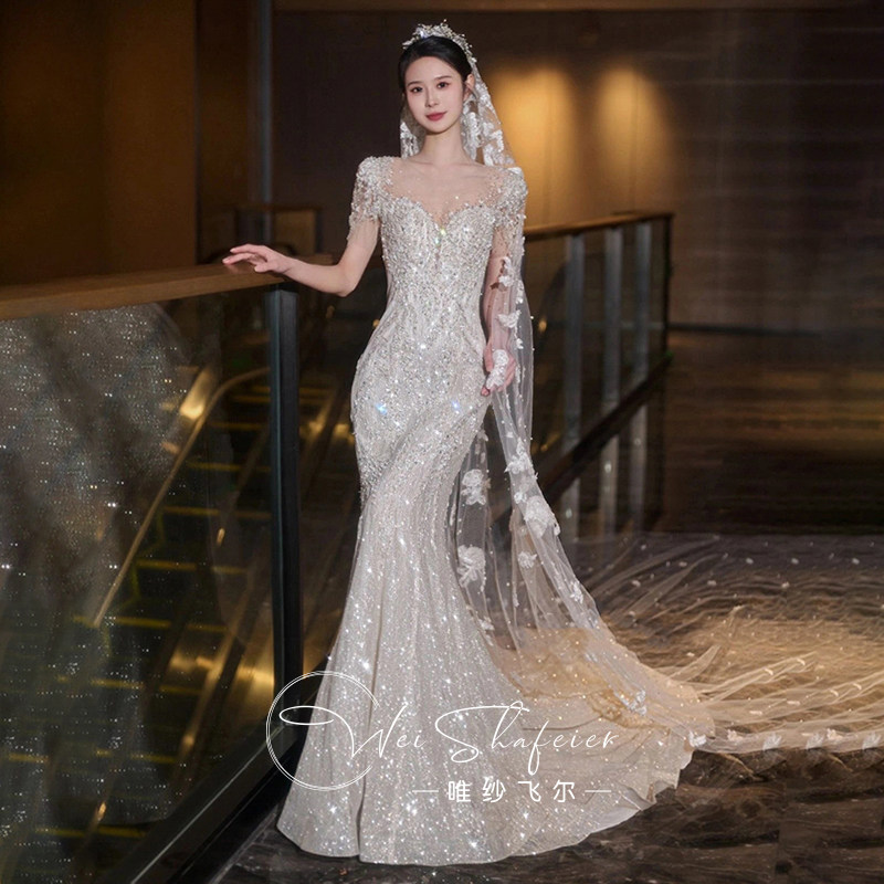 French fishtail niche light wedding dress dressing gown bride 2024 new small person engagement dress toast dress going out dress