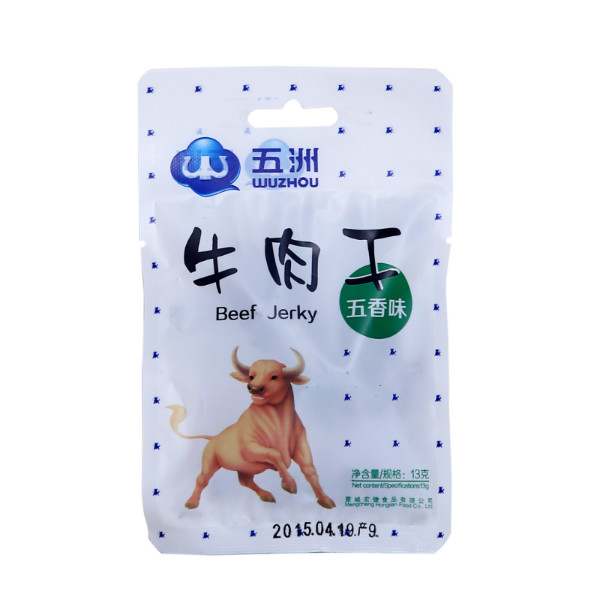 Five Continent Niu meat dry with five aromas of spicy 13g * 5 bags Anhui Tenn. independent small packaged casual child granules snacks