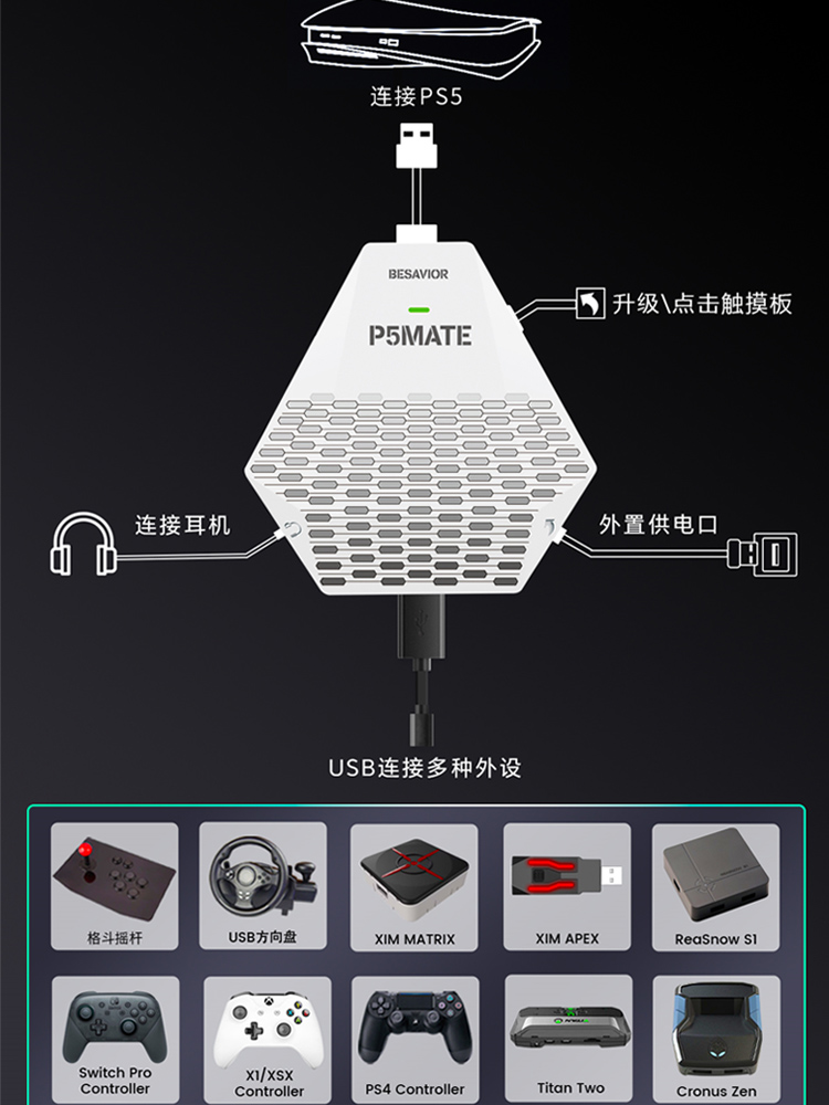BESAVIOR PSMATE PS5 guide converter- (Original chip is plugged in) key and mouse conversion-package A