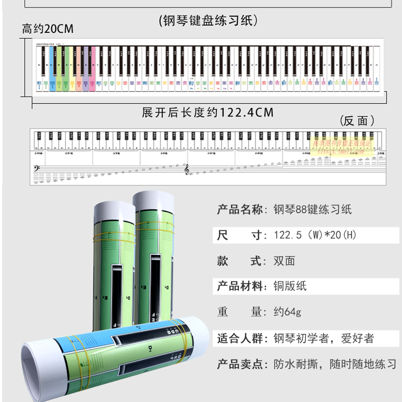 88 key standard size piano keyboard Paper 1 to 1 piano fingering practice paper staff keyboard Wall Chart children adult beginner piano teaching aids waterproof paper keyboard piano key comparison staff table staff table