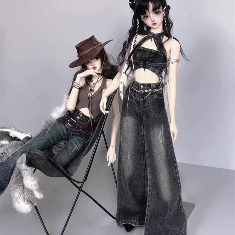 (Kaka Planet) BJD baby clothes 3 points 4 points Denim series Retro washable wide-leg jeans