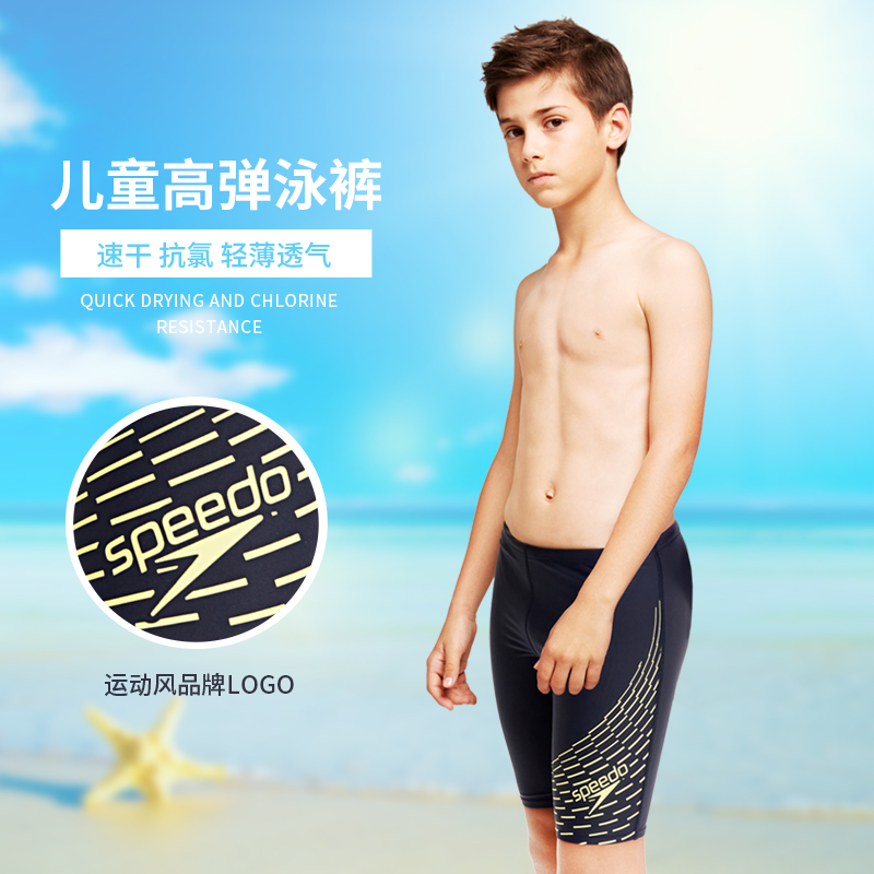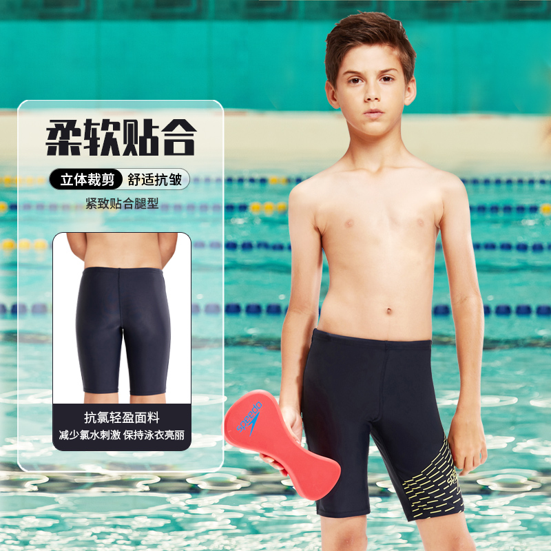 Speedo children's swimming trunks youth boxer anti-chlorine close-fitting breathable high-elastic comfortable sports swimming trunks