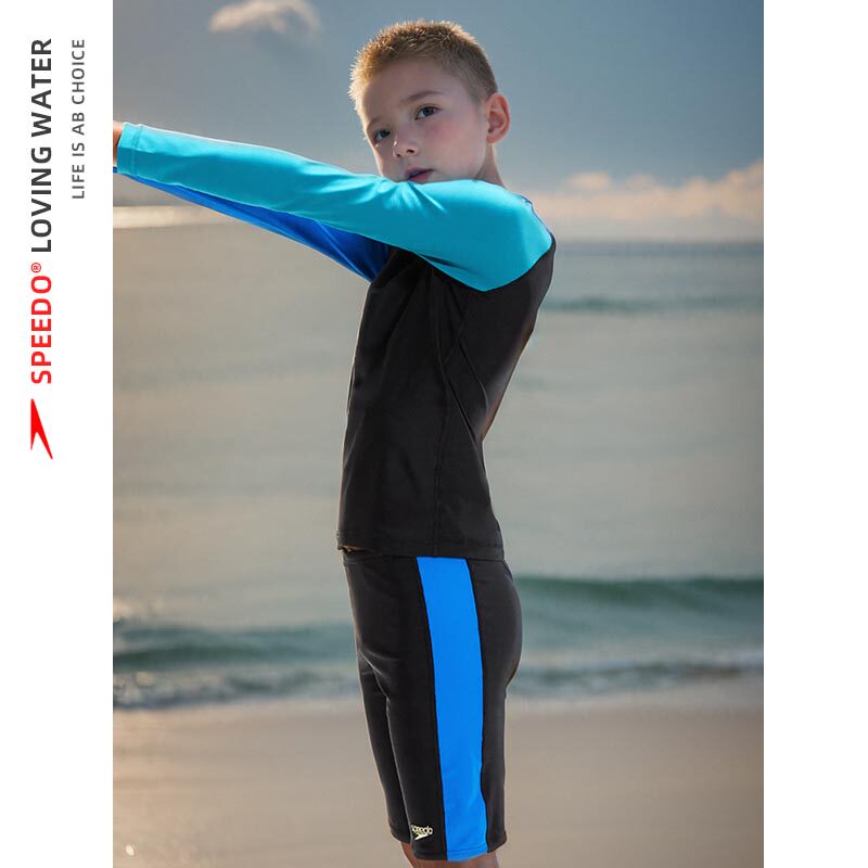 Speedo children's split swimsuit for boys and girls long-sleeved professional water surfing sunscreen hot spring leisure swimsuit