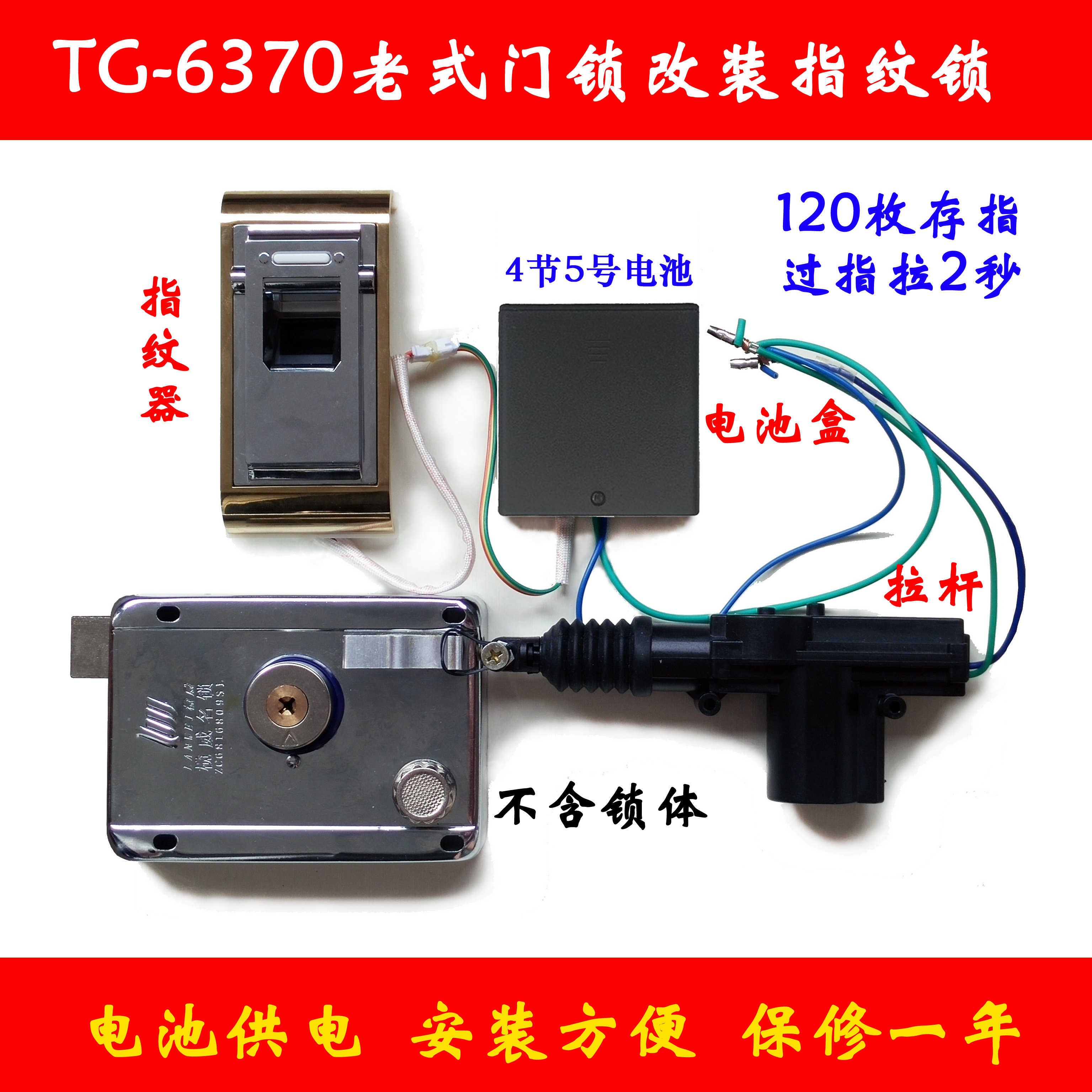 New version TG-6320 type _ Universal Shoulder Bag Type 5 Wire Stepping Motor Fingerprint Lock Replacement Old-fashioned Lock Lithium Charge