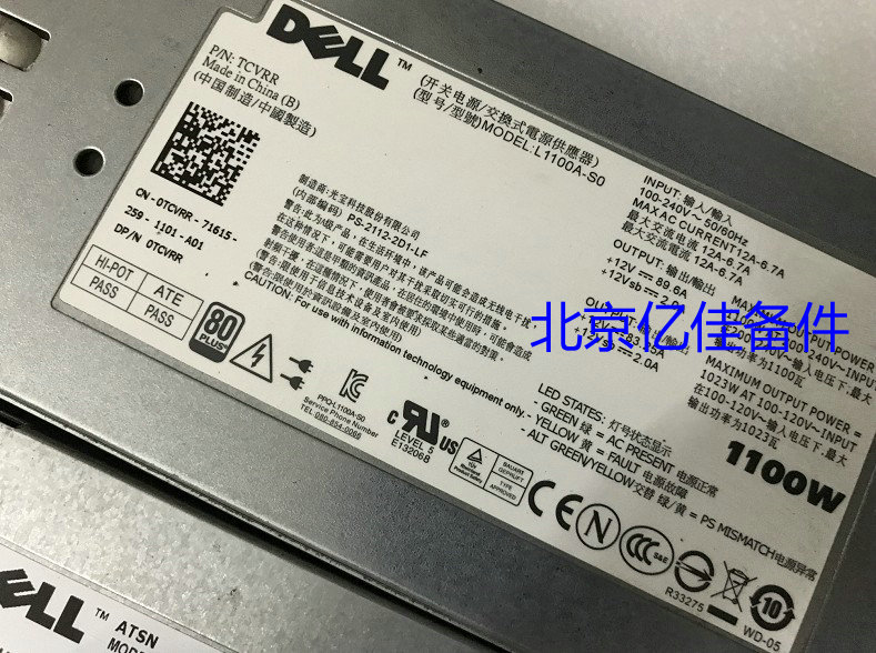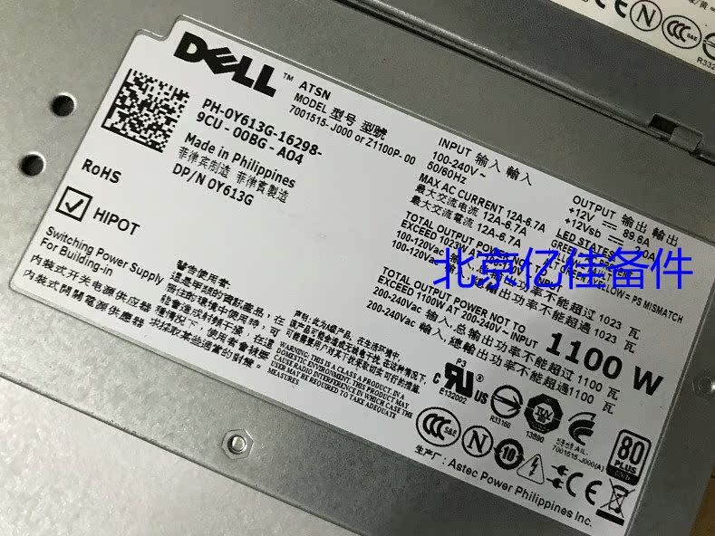 DELL R510 R5500 R810 R910 1100W power supply Y613G TCVRR 1Y45R 3MJJP