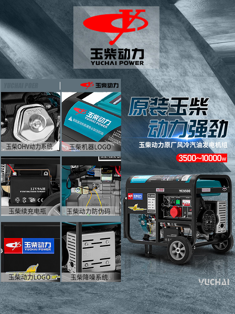 Yuchai Power 3 5 6 8 10KW kilowatt small gasoline generator household single phase 220V three 380V outdoor