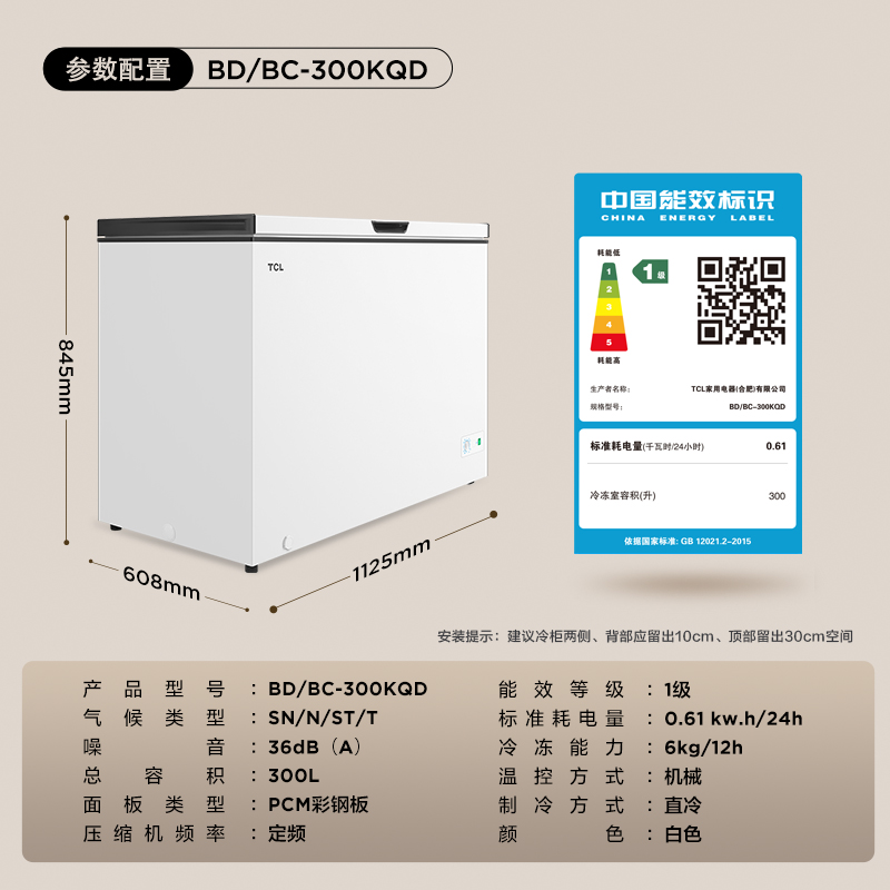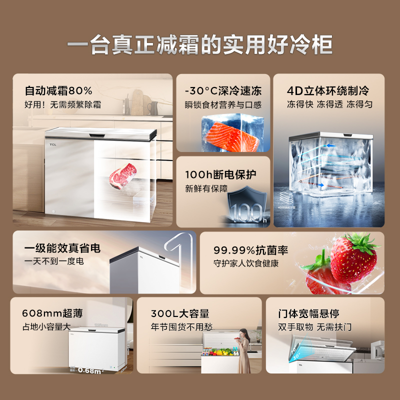 TCL 300L Low Frost Large Capacity Freezer Level 1 Energy Efficiency Energy Saving Ultra-Thin Commercial Freezer White Whale