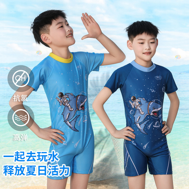 Children's swimsuit, baby boy's shark swimming trunks, sun protection, quick-drying split, small, medium and large children's summer professional swimming equipment