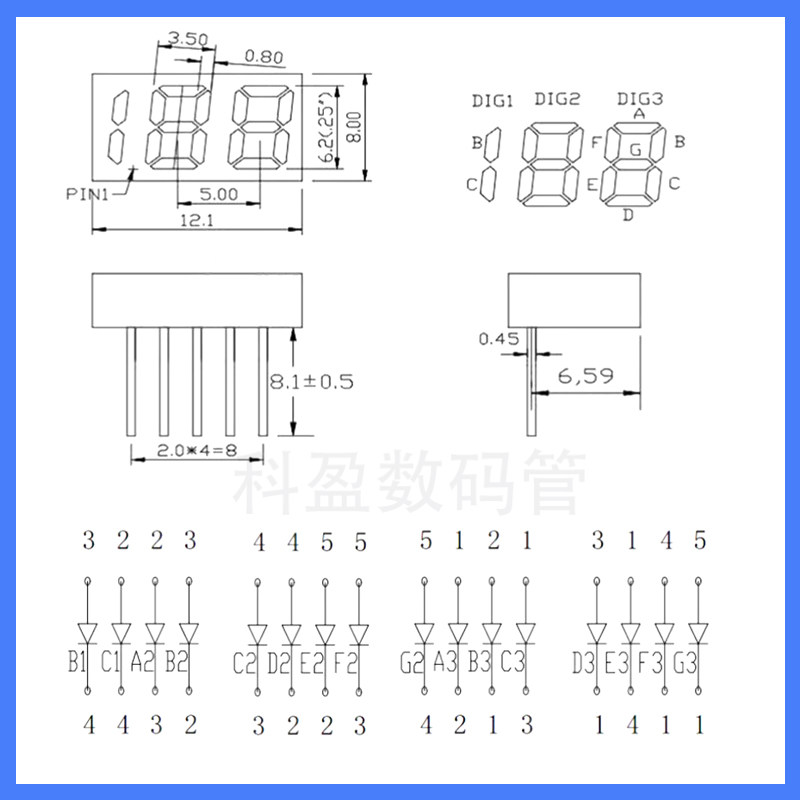188 digital tube 0 25-inch two-and-a-half-digit digital tube single row 5-pin digital tube under white light 2353 digital tube