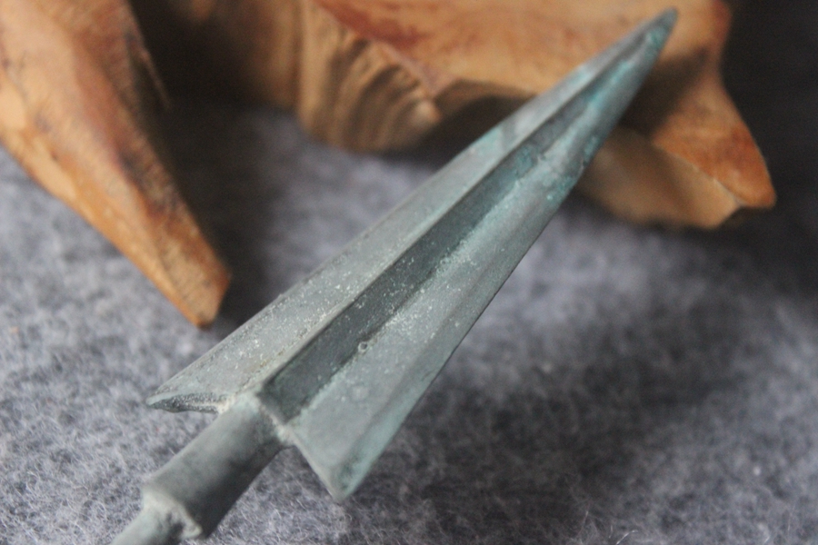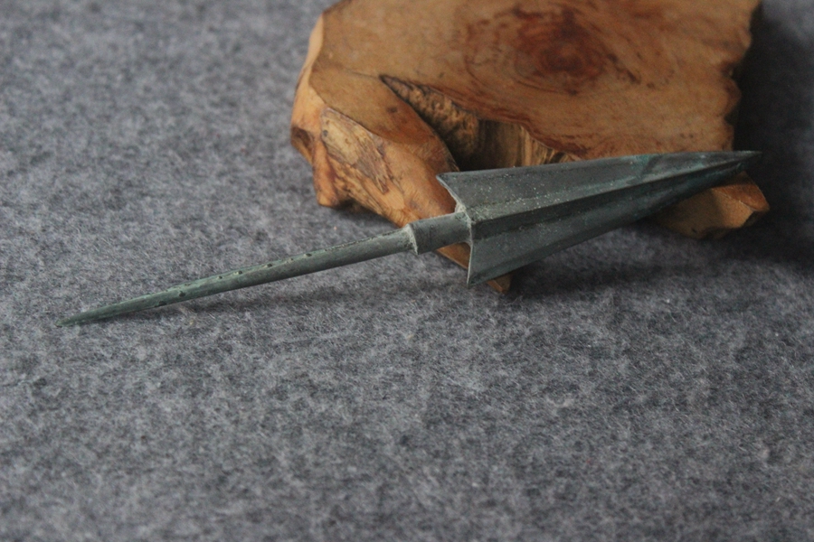 Not aware of the year's large ancient arrowhead tridimensional double-wing winged arrow cluster total length 16 cm ZZ 2661