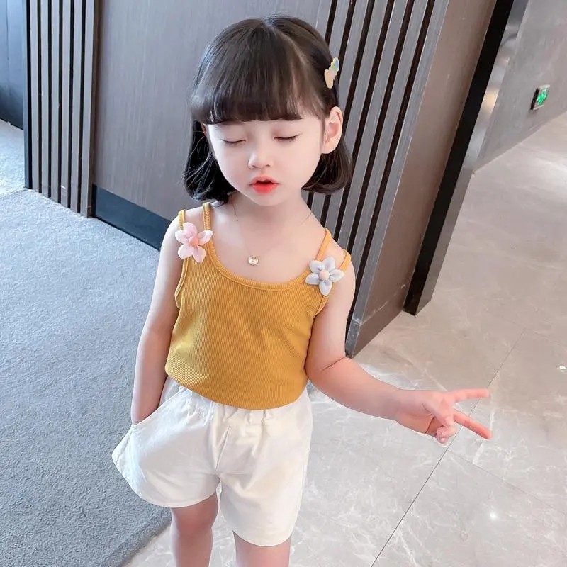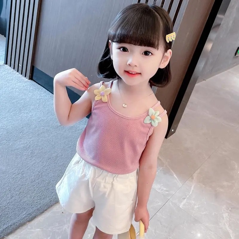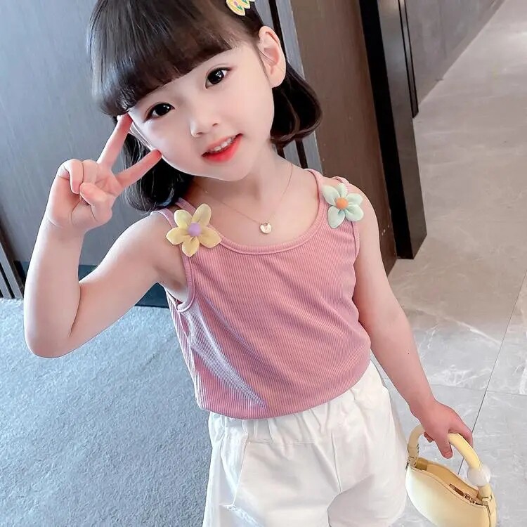 Girls vest 2024 summer new style children's candy-colored flower small sling baby fashionable sleeveless top cool
