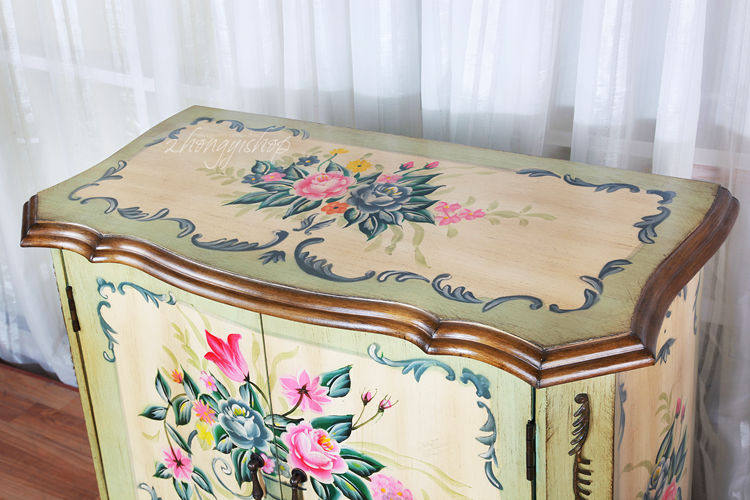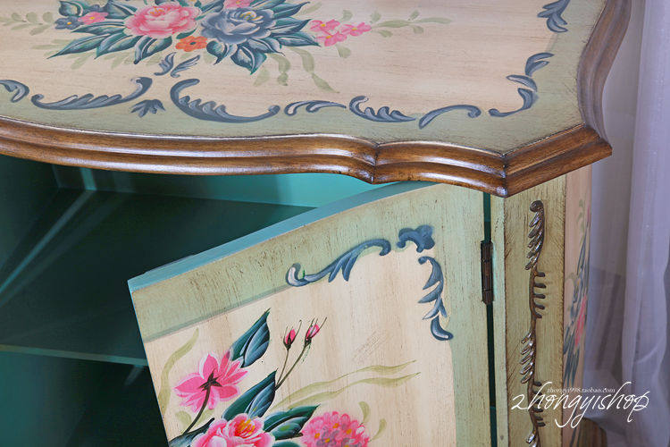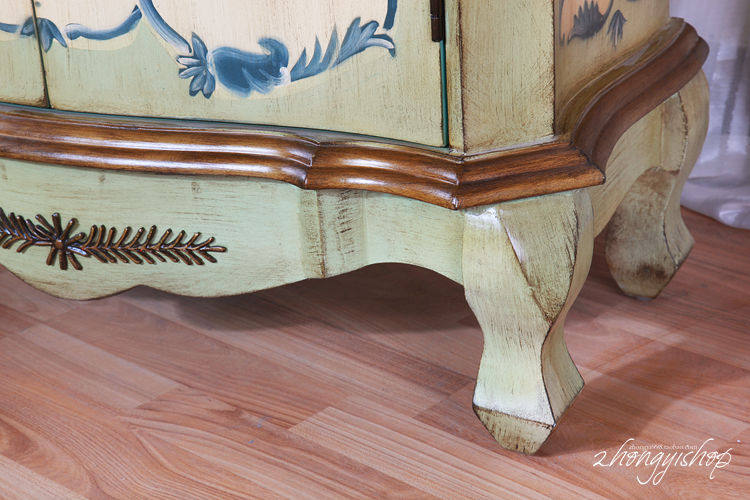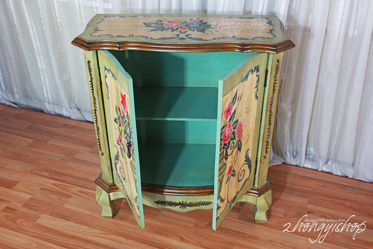 New Chinese green old pair door cabinet antique hand-drawn decoration cabinet display cabinet