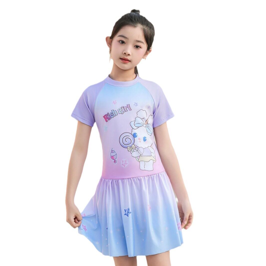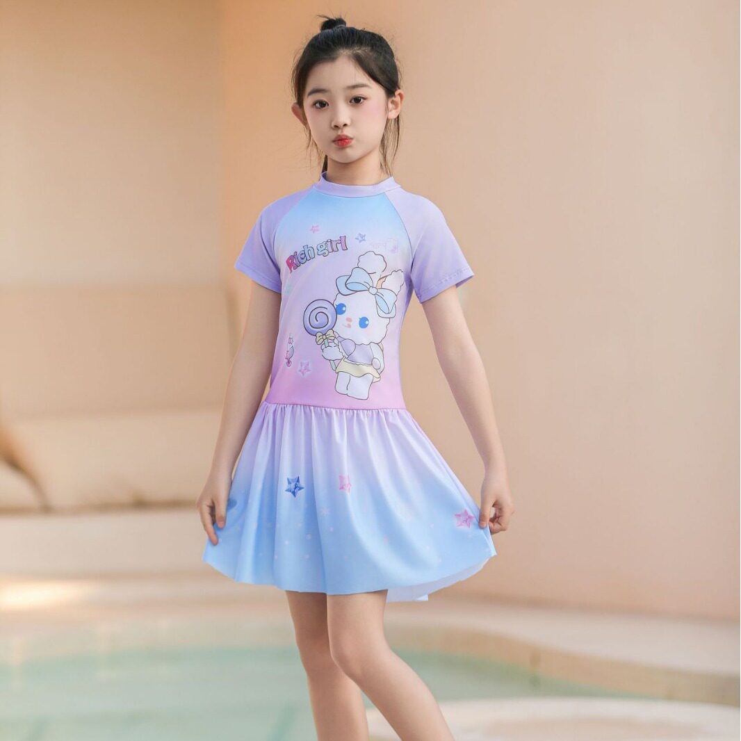 Children's swimsuit girls sweet 2024 new medium and large children girls baby one-piece hot spring swimsuit swimsuit