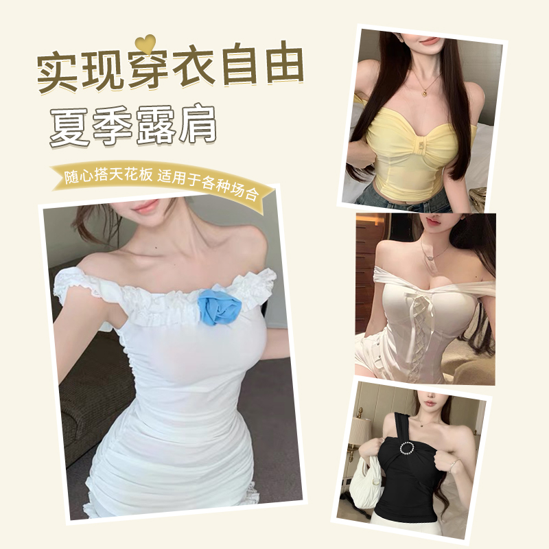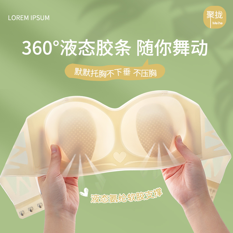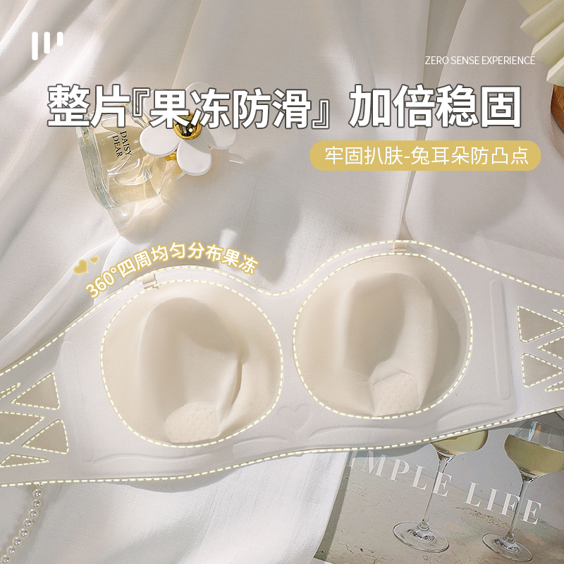 Strapless underwear for women, non-slip, push-up summer thin rabbit ears, large breasts appear smaller, seamless invisible bandeau bra