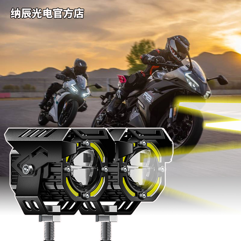 Motorcycle spotlight bifocal lens modified LED external headlight strobe light far and low beam integrated steering auxiliary light