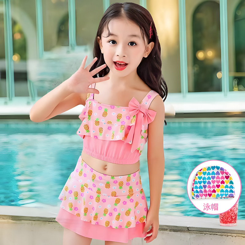 Children's swimsuits and girls' one-piece 2023 new medium and large children's girls cute and sweet hot spring quick-drying swimsuits