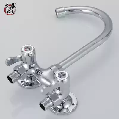 Full copper kitchen faucet hot and cold rotating sink faucet washing basin faucet double cut double switch