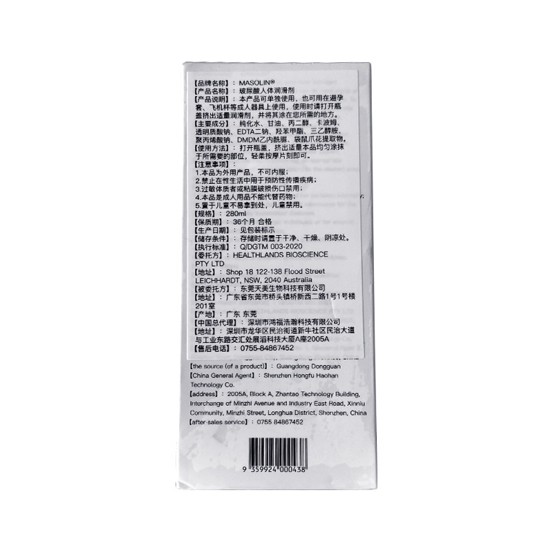 MASOLIN Hyaluronic Acid Human Lubricant 280ml