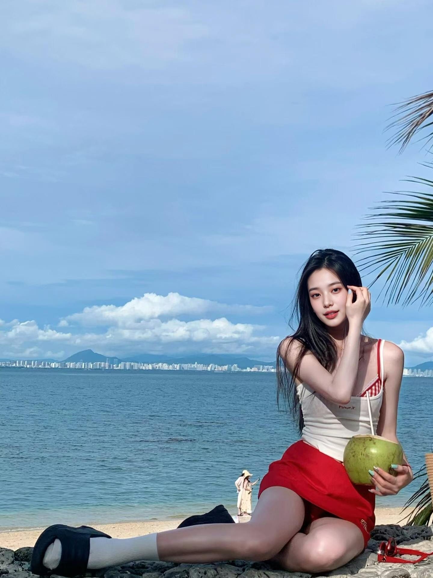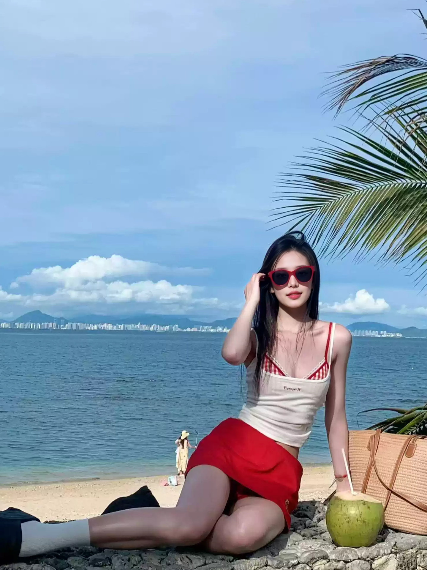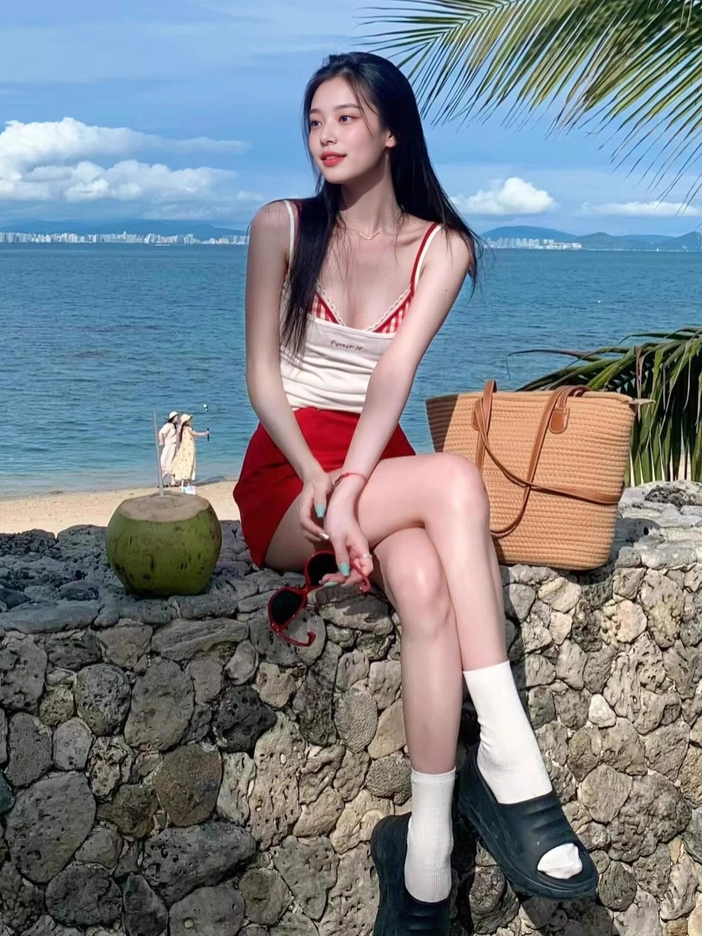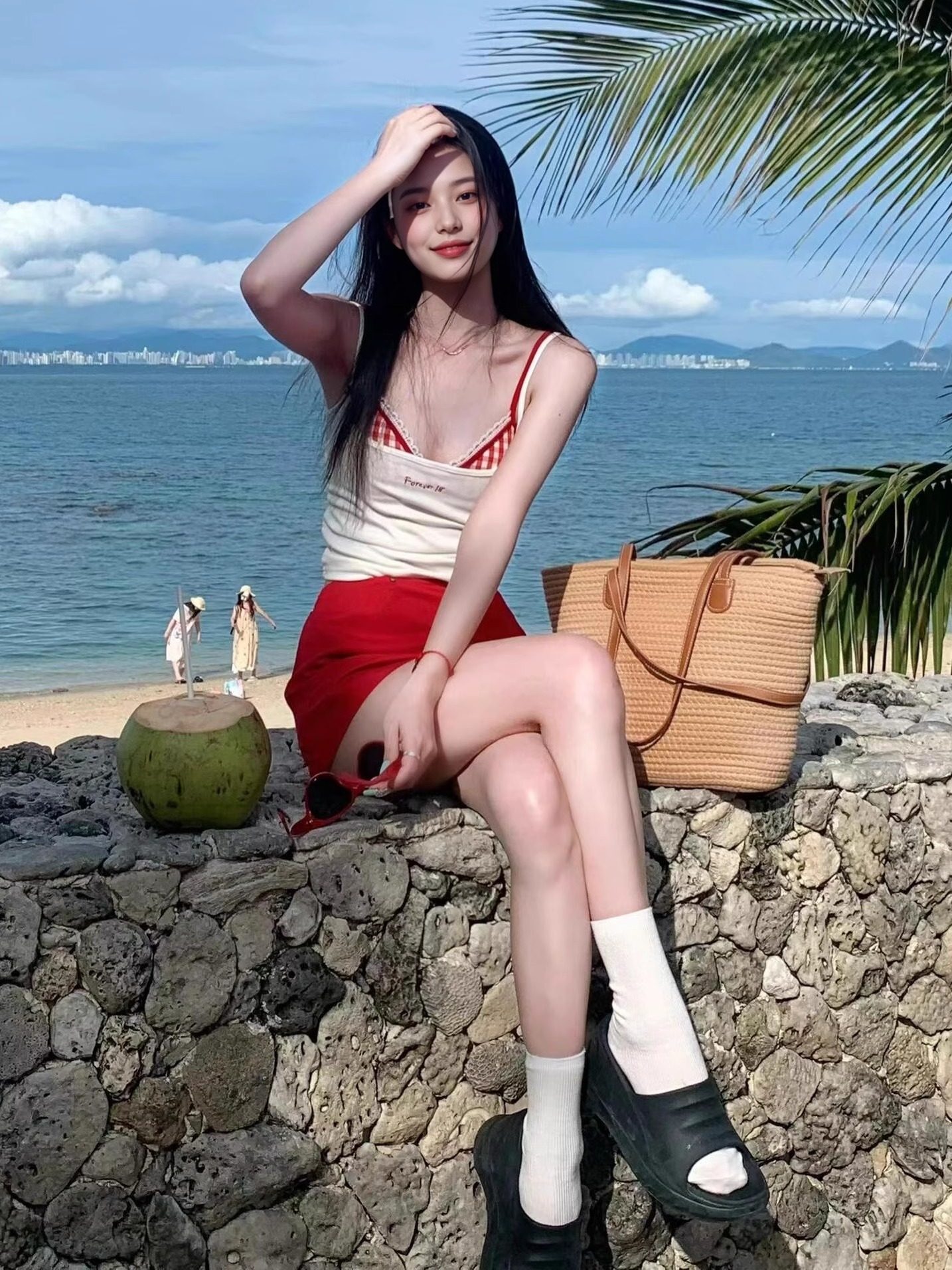 Grid bikini white vest red half skirt plate bikini plate bikini white vest