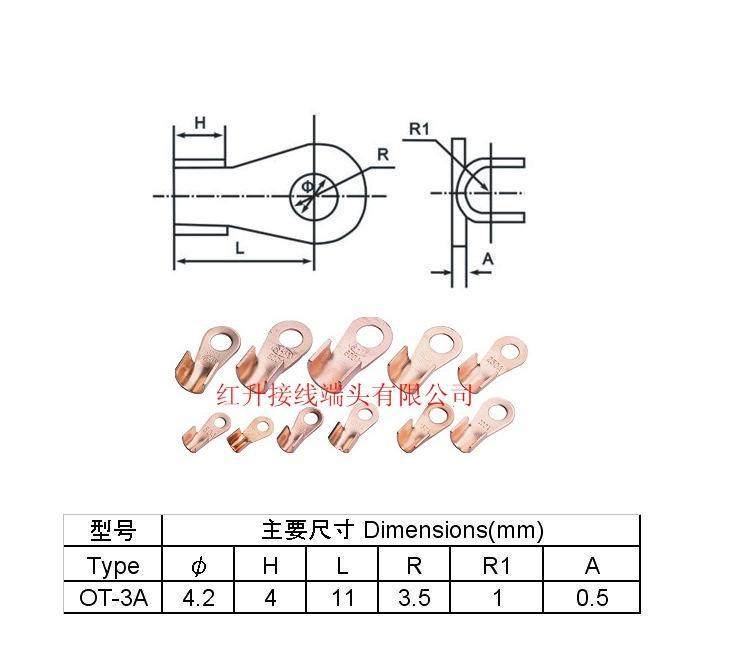 OT-100A 500pcs Copper nose Copper wiring nose Copper open nose Wire connector