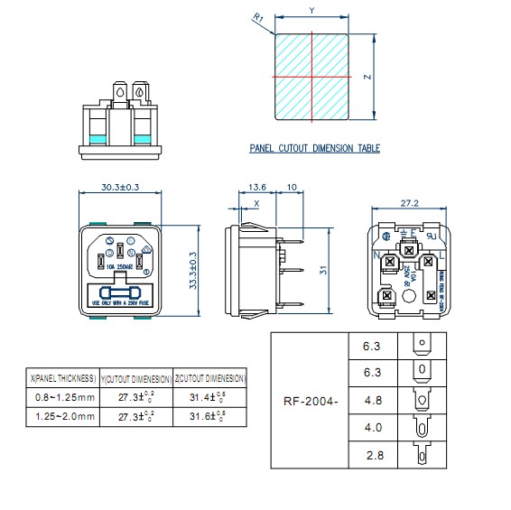 RF-2004 RONG FENG 10A 250VAC originally installed Taiwan Rongfeng with insurance power socket