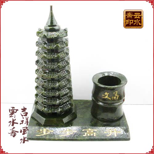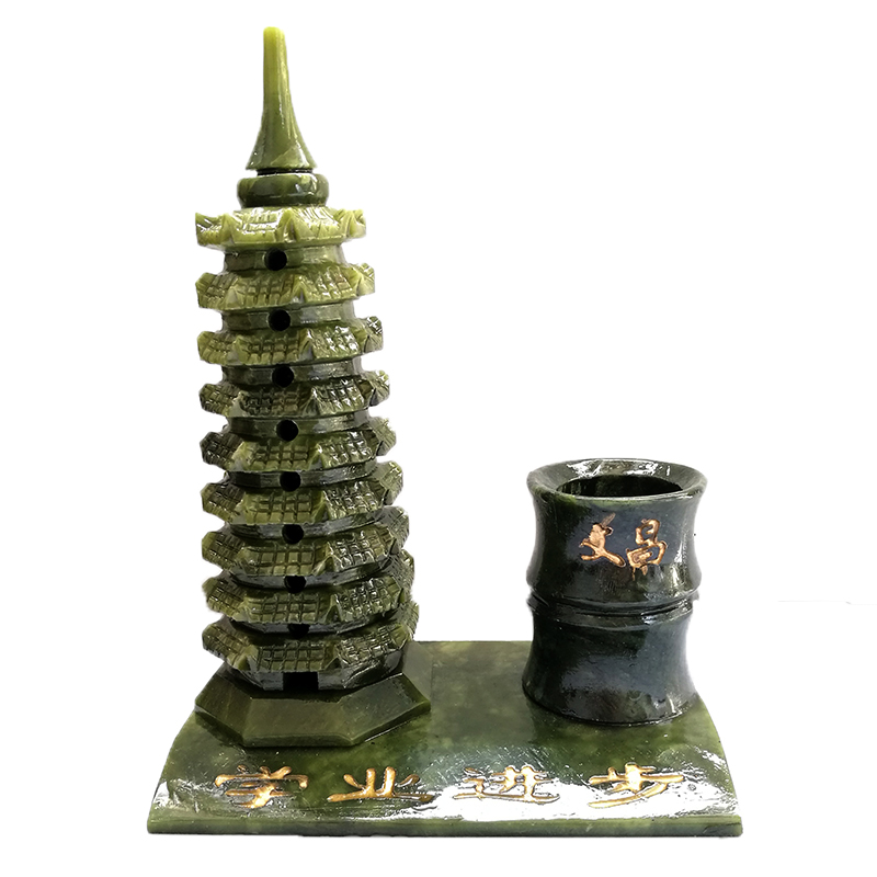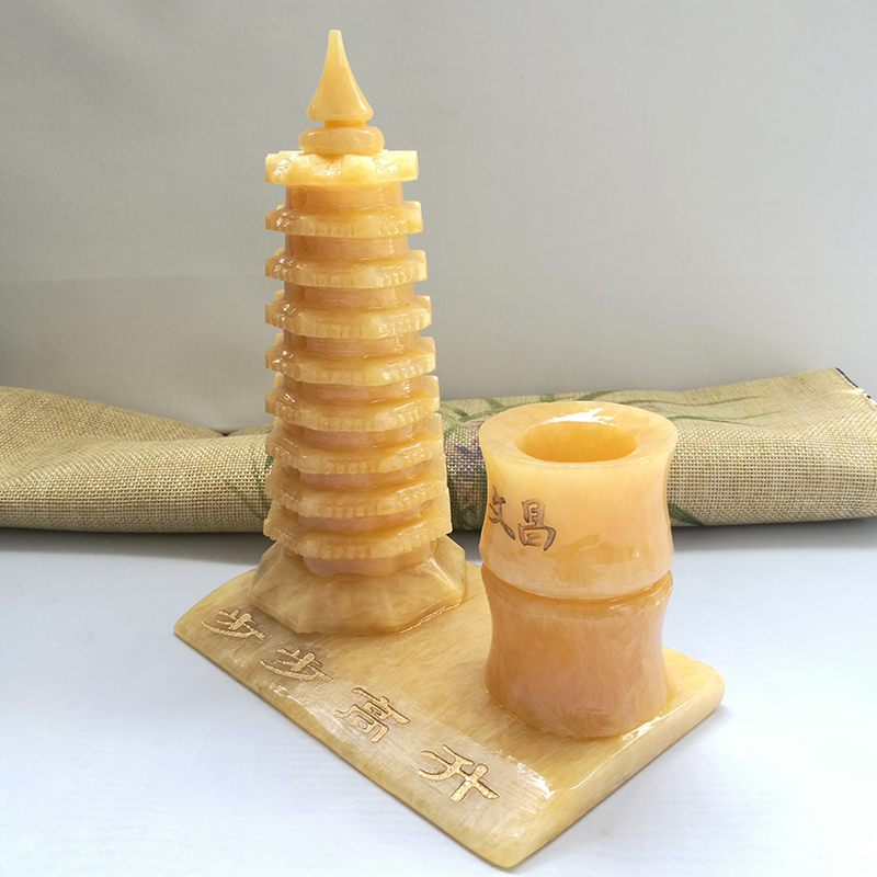 Natural jade topaz pen holder tower ornaments 13 nine floors thirteen floors desktop crafts desk gift jewelry