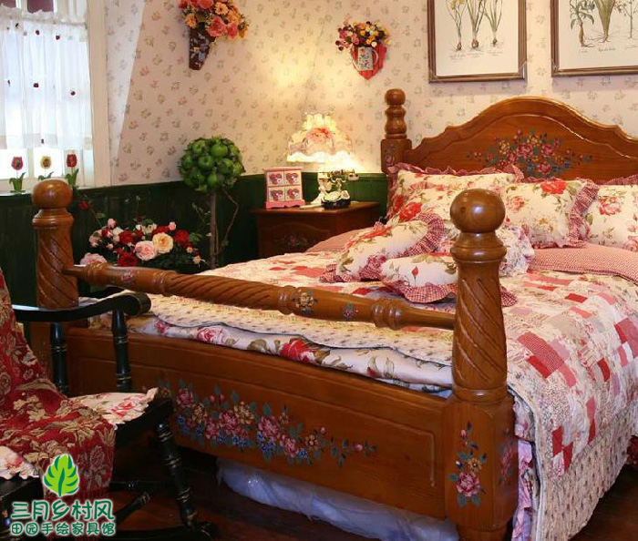 March country style American pastoral style English red oak hand-painted furniture painted large bed bedroom British solid wood