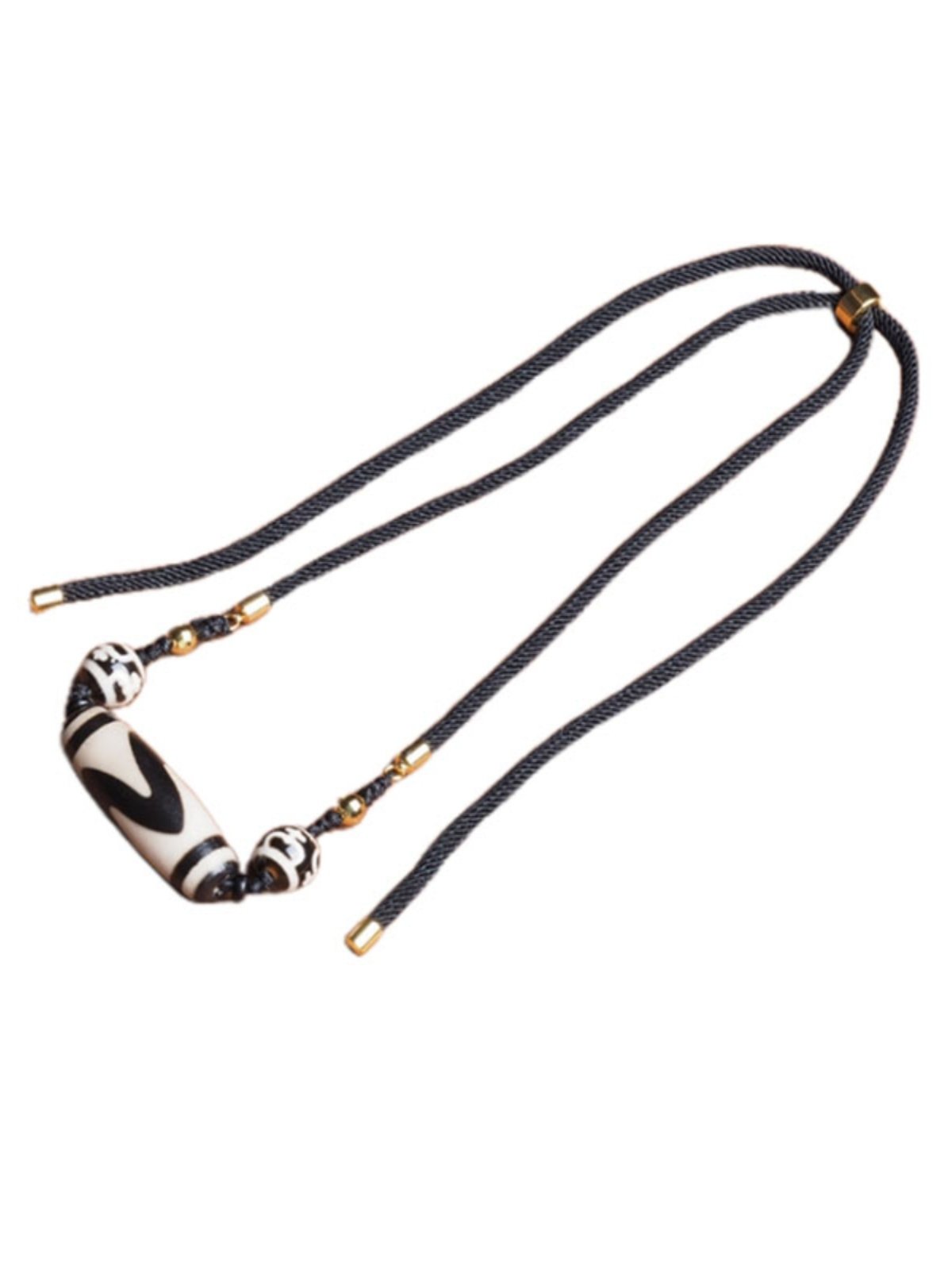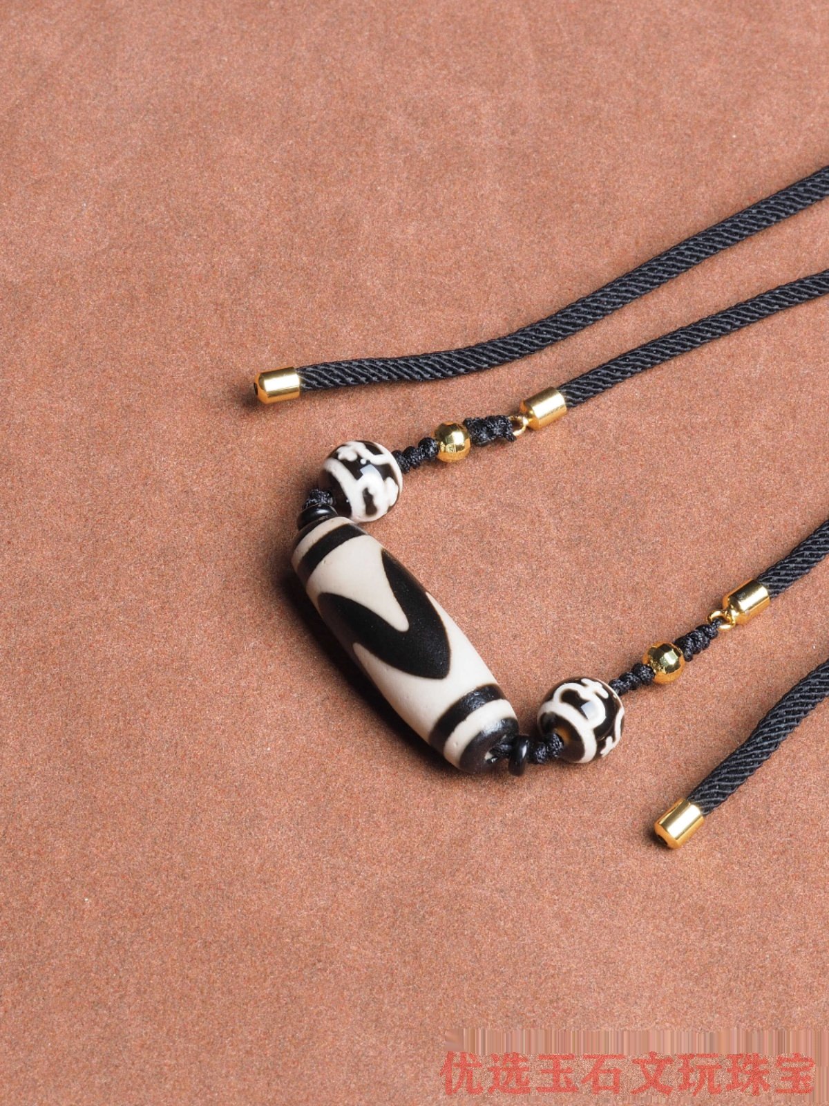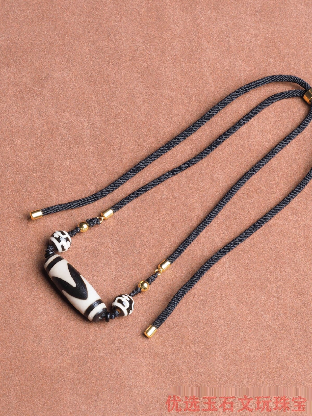 Tibetan black and white tiger teeth bead pendant men and women horizontal necklace halter neck natural Tibetan authentic rope adjustable