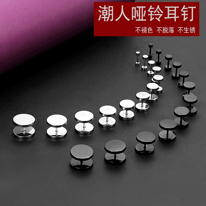 South Korea Nets Red Round New Tide Man Black Men's Ear Nail Lady Brief Titanium Steel Earshot Stars The Same Earrings