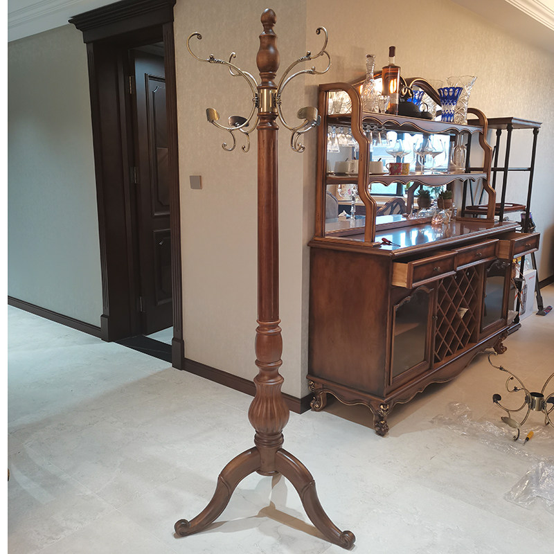 All solid wood coat rack household modern wood coat rack hanger bedroom European American floor-to-ceiling wooden coat rack