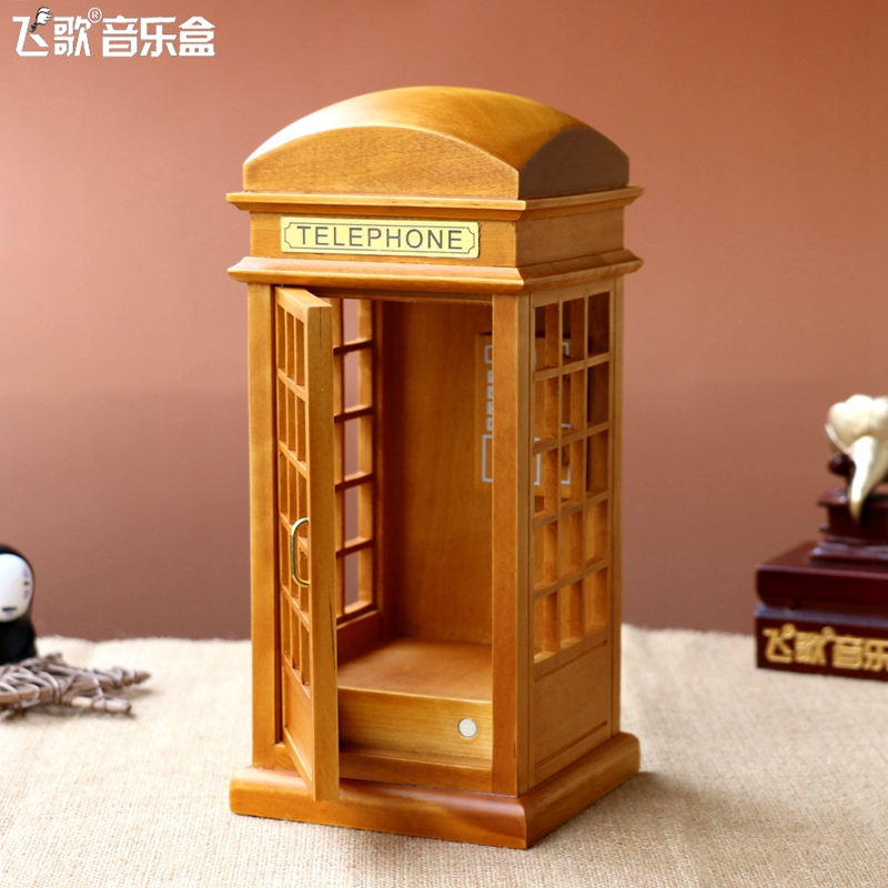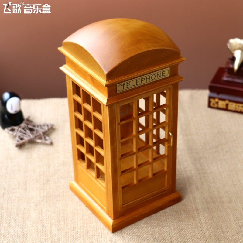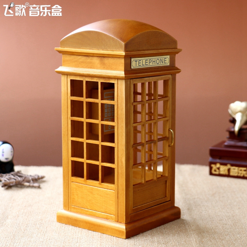 London Street Emulation Phone Kiosk Music Box Wood Octaphonic Box Creative Birthday Present Gifts Girls Girlfriends Girlfriends