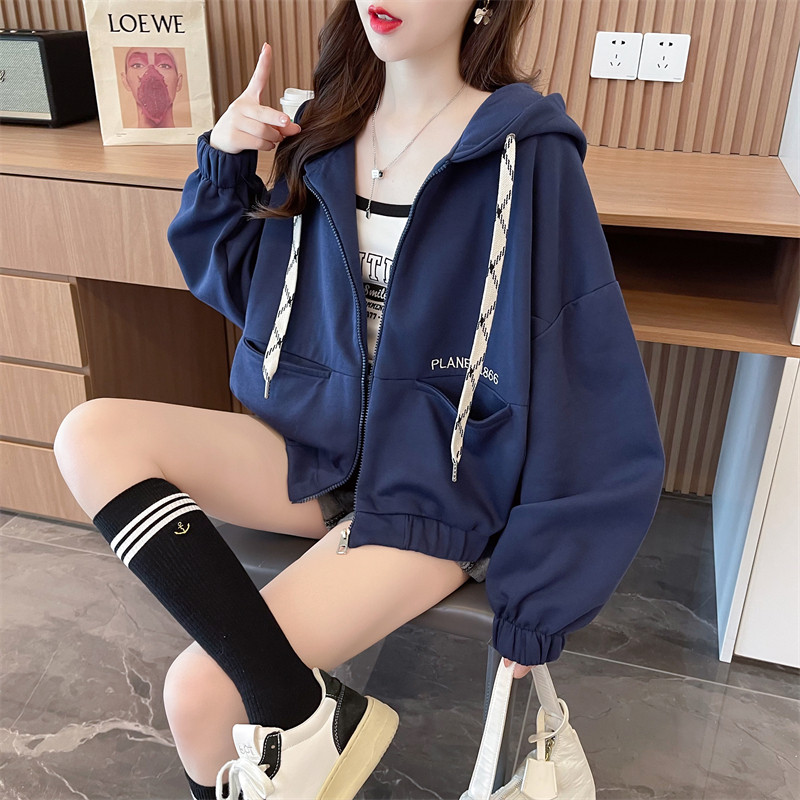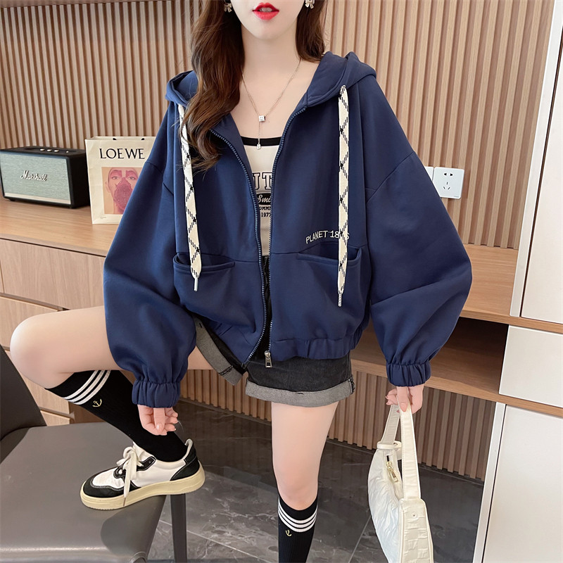 Pregnant women's sweatshirts fashionable loose late pregnancy short cardigan hooded jacket long-sleeved sweatshirt spring and autumn clothes trendy