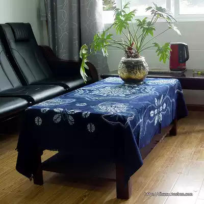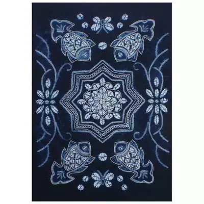 Yunnan ethnic characteristics crafts Bai handmade pure cotton tie-dyed table cloth square auspicious fish dark blue