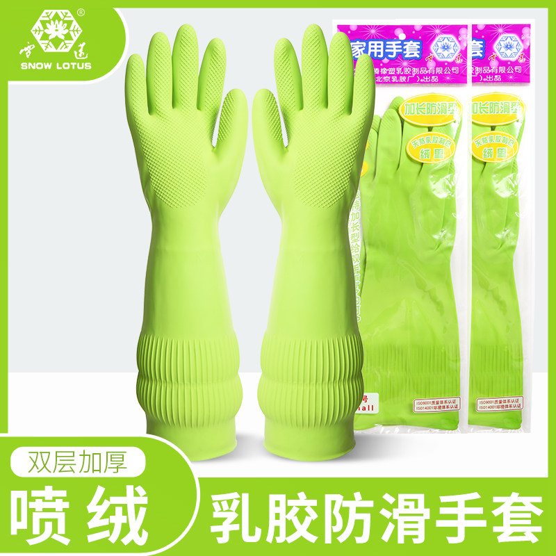 Snow Lotus housework cleaning rubber gloves extended and thick dishwashing laundry rubber waterproof plastic kitchen gloves