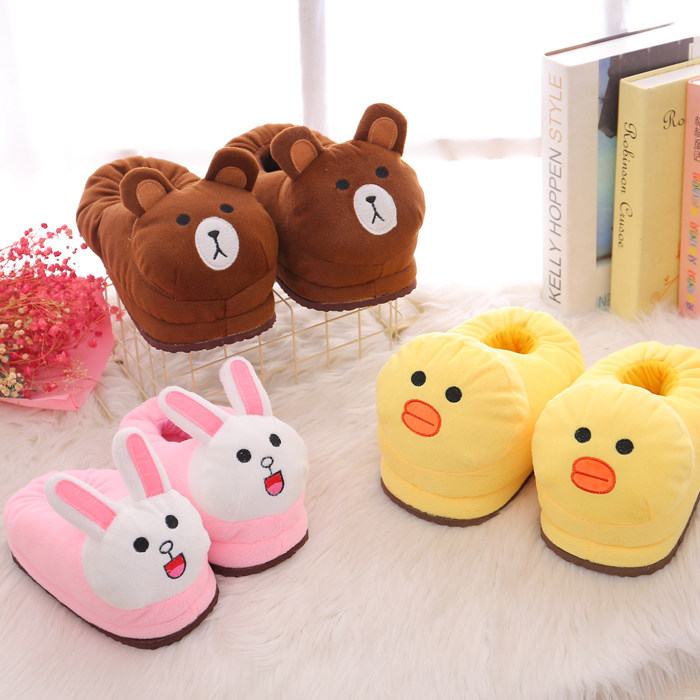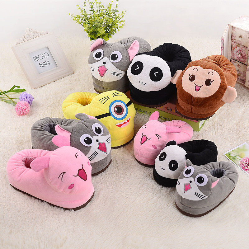 Korean version of cute animal cartoon cotton slippers for men and women children with thick bottom warm couples home parent-child cotton shoes winter