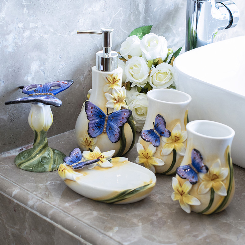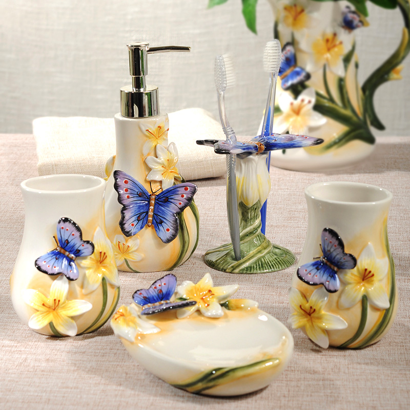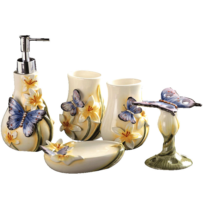 Bathroom kit Ceramics 5 Pieces Suit Cleaning Appliances Bathroom Five Pieces Kit Components Wash Butterfly choreography Bathrooms Wash Bath supplies