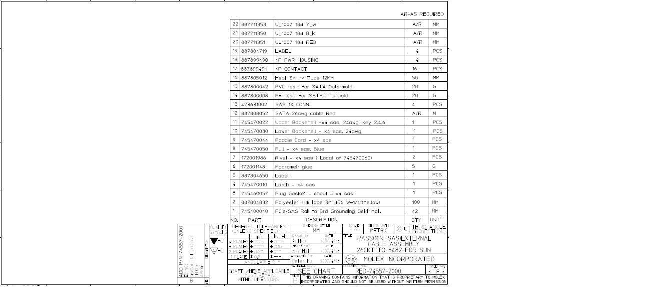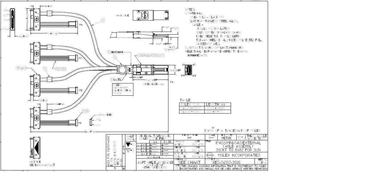 Molex SFF-8088 pair of 4 * SFF-8482 built-in wire (with power supply) 1 0 m 745572000