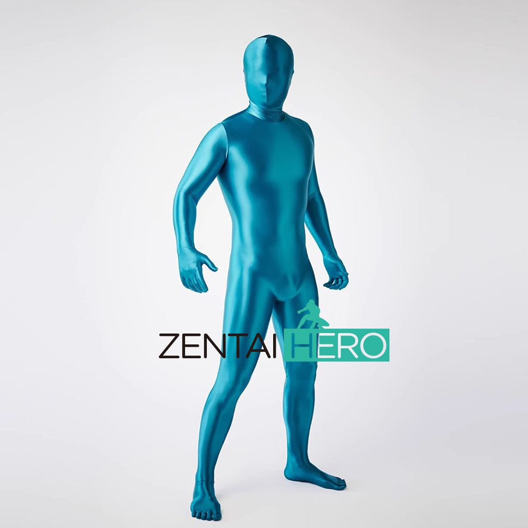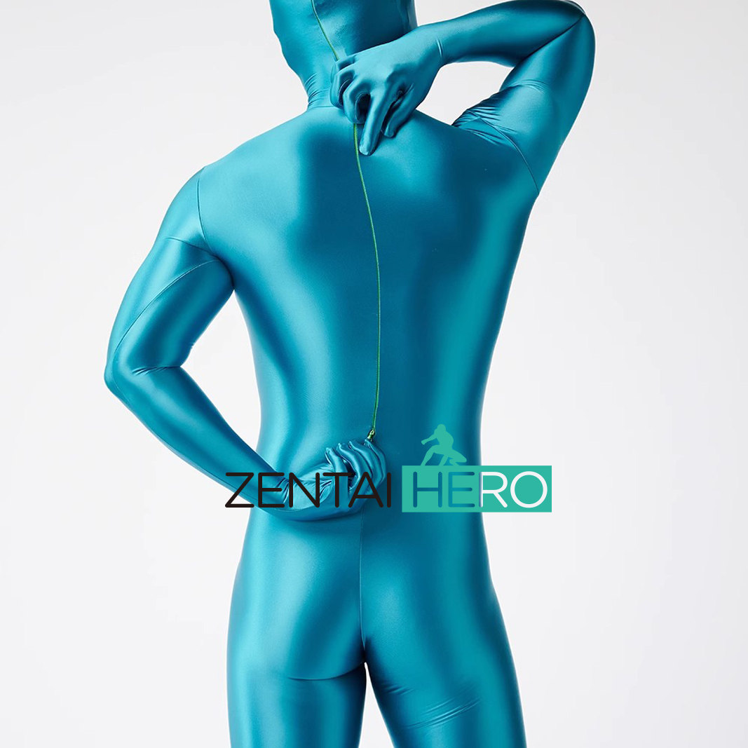 All-inclusive silky high-elastic zentai sexy peacock blue oily cloth soft and close-fitting bodysuit cos clothing