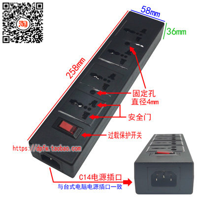 10A national standard inline first-control four-plugboard for TV cabinet skirting socket straight-head power cord platoon