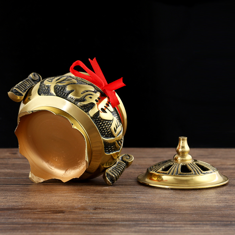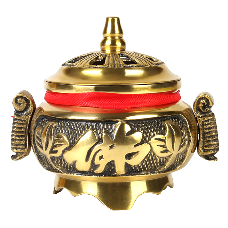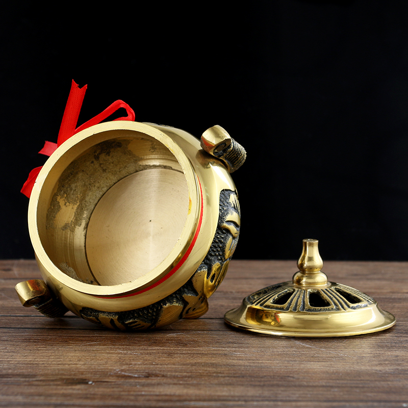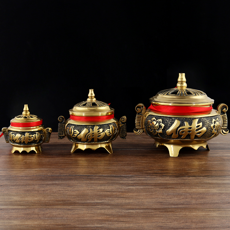 Copper incense burner incense burner pan incense burner copper two-sided Buddha word copper sandalwood stove pure copper incense road supplies Buddha equipment ornaments Buddha Hall