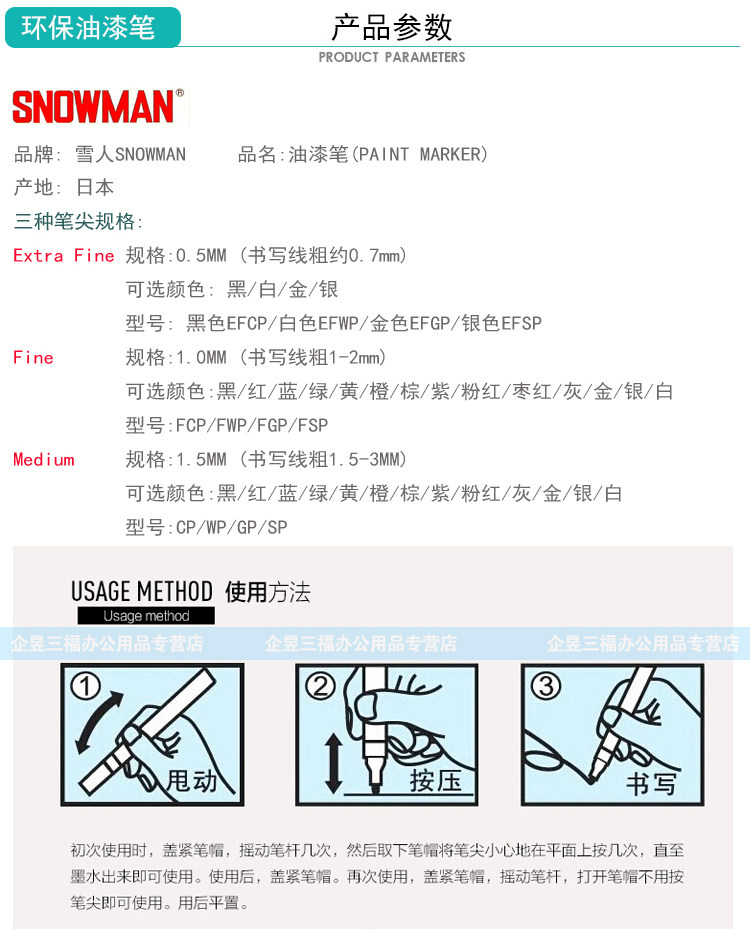 Original snowman paint pen snowman snowman brand lead-free environmental protection paint marker pen FCP FWP FSP 1MM