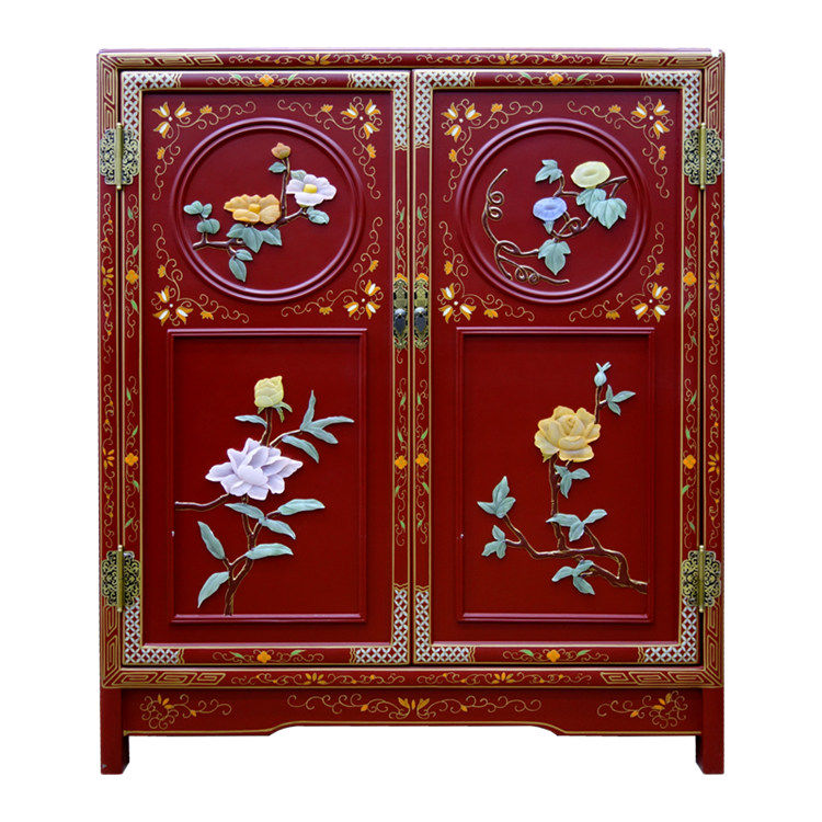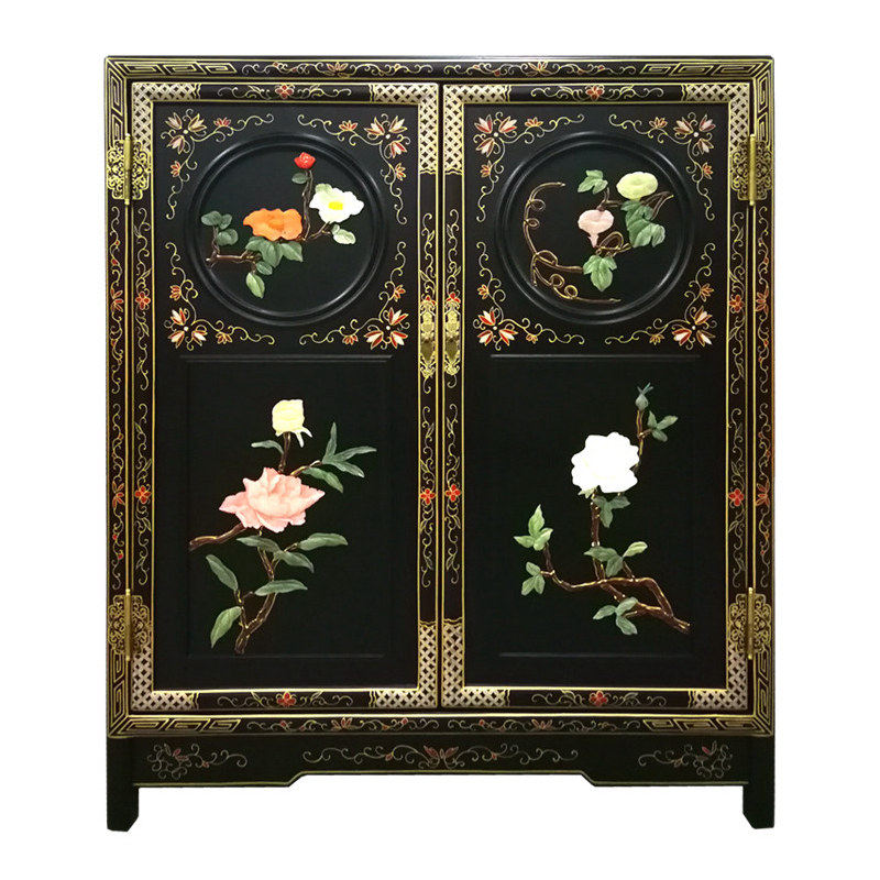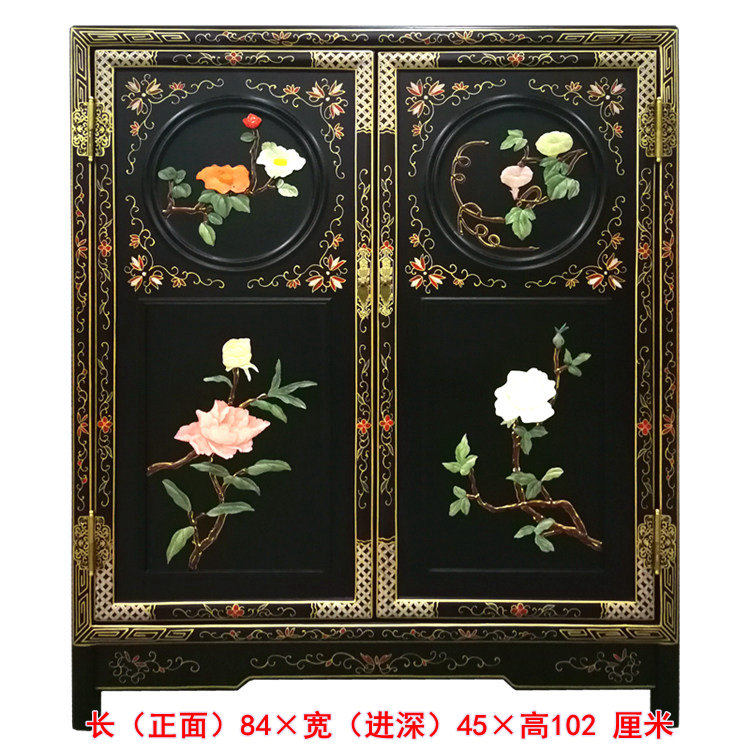Bone Stone Inlay Flowers Birds Double Door Round Side Cabinet Xuanguan Decorative Wardrobe containing cabinet Yangzhou lacquerware New classical furniture