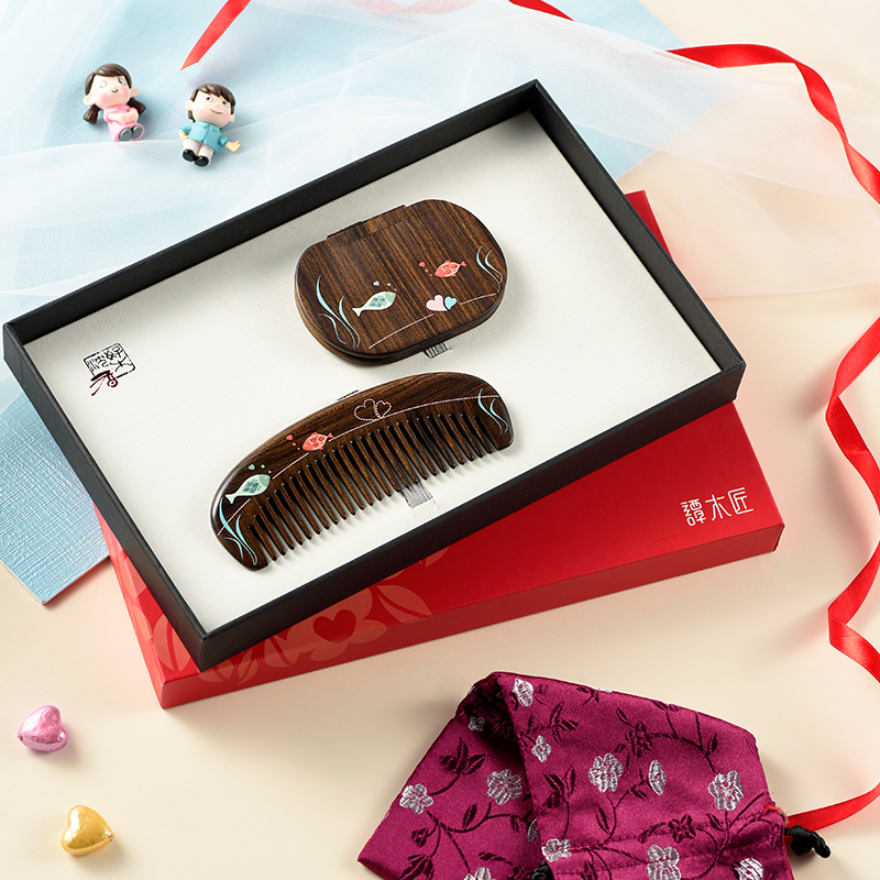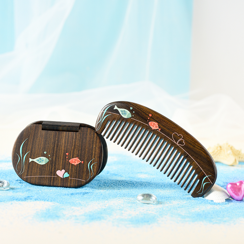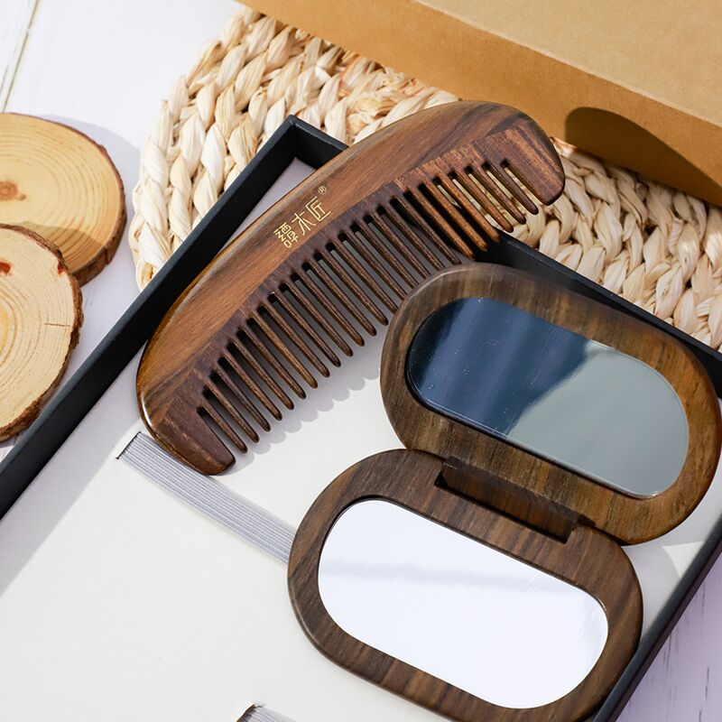 Tan Carpenter Comb Mirror Gift Box Set Fish Raw With Your Personal Clean Care Couple Wood Comb Cosmetic Mirror Subs