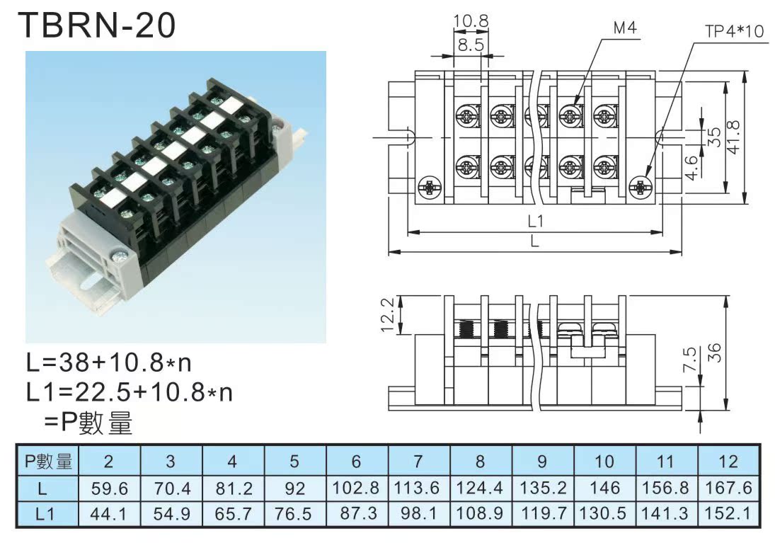 TBRN-20 20A with protective card rail wiring terminals (high quality copper connection sheet) in position-denominated