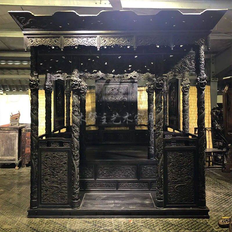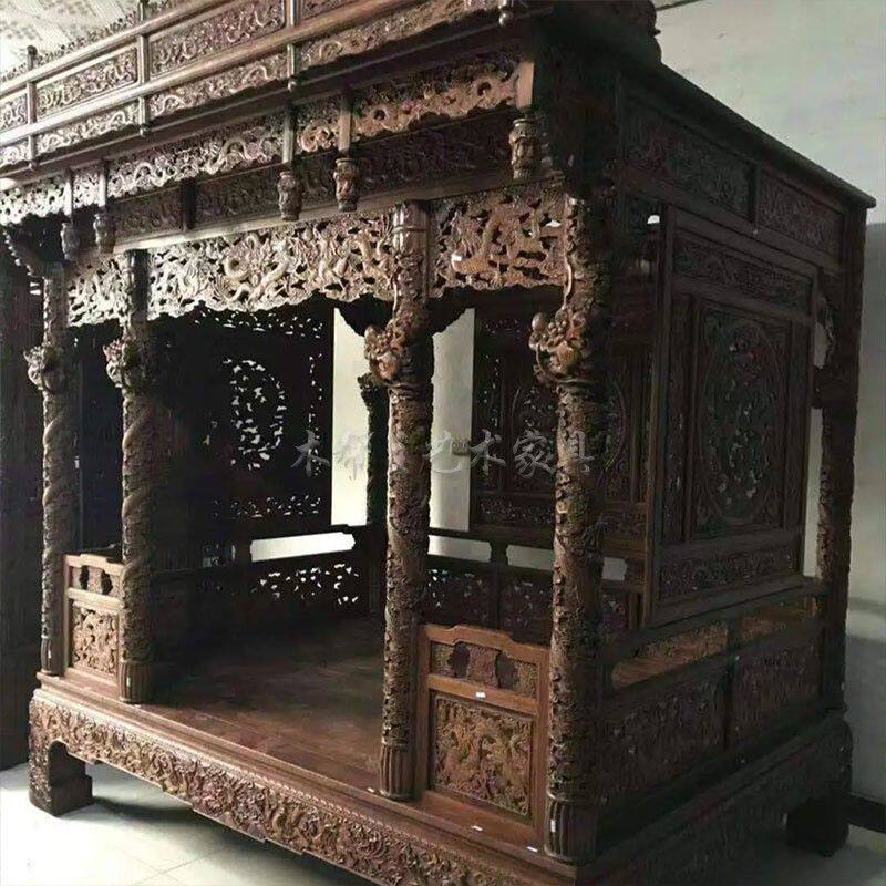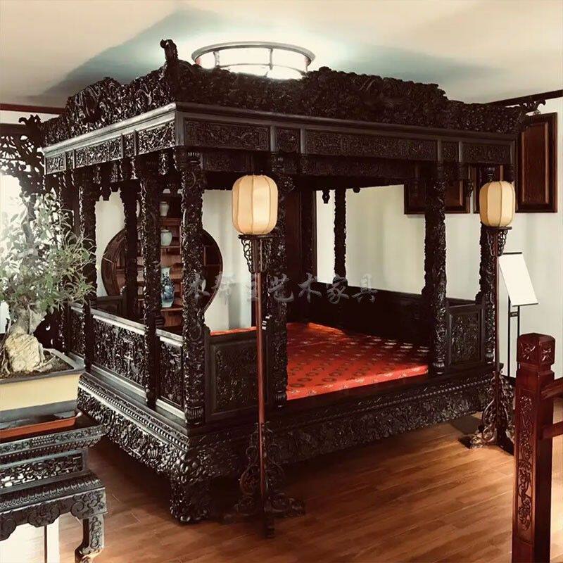 Villa antique solid wood hole bed rural shelf step full bedroom new red custom old-fashioned bed Chinese style bed classic