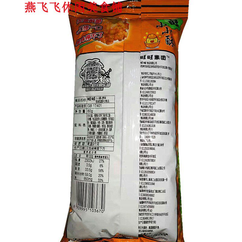 60g x 8 Bags Wang Wang Original Scallion Chicken Black Peppercorn Small Casual Nostalgic Snack