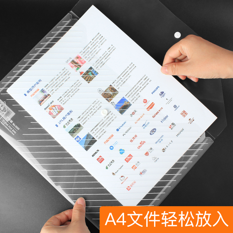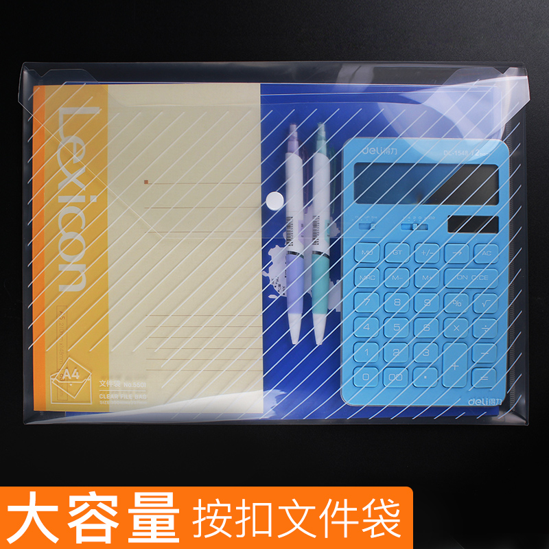 30pcs Deli transparent document bag Production inspection data storage bag A4 large and thick snap button bag Plastic bag Official document bag Contract resume personnel large capacity student paper bag