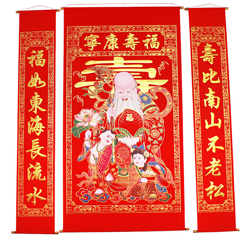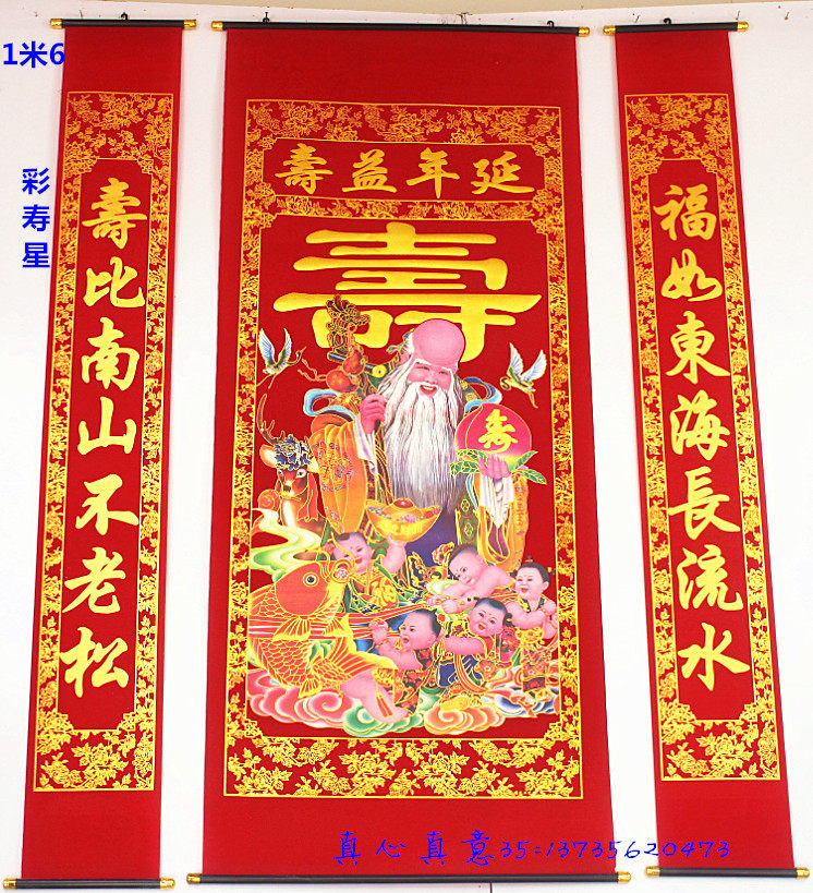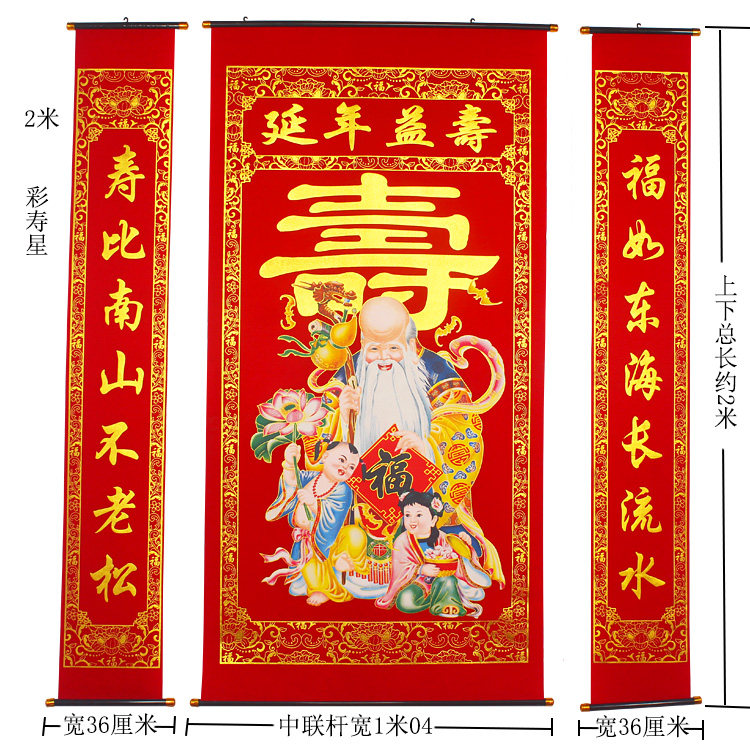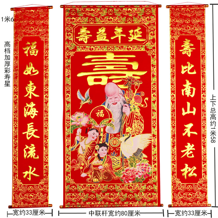 Hall house flannel bronzing congratulation and blessing word Living room hall hanging painting prolonging life Old birthday star birthday couplets Rural